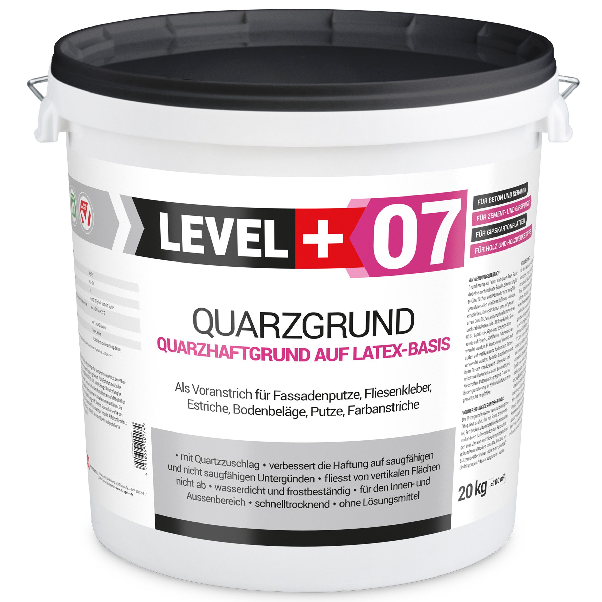 Der QUARZGRUND ist ein hochwertiger Spezialgrund auf Latex- und Quarzbasis. Durch den Quarzzuschlag im QUARZGRUND wird die Untergrundfläche vergrößert und eine Haftschicht mit hoher Haftfähigkeit und Porosität gewährleistet. Der Einsatz von QUARZGRUND reduziert das Risiko, dass wegen schädlicher Substanzen vom Untergrund die nachfolgende Putzschicht verfärbt wird. Der QUARZGRUND ist empfehlenswert für glatte Betonflächen oder nicht saugfähige Untergründe wie Keramik, Naturstein usw. Das Grundiermittel ist anwendbar für gemauerte Untergründe, für entsprechend vorbereitete und befestigte Holzplatten, Spann- und OSB-Platten, Gipskarton-, Gips- und Zementplatten, Porenbeton, Stahlbeton, keramische Ziegelsteine, Putze usw. Das Produkt eignet sich unter beheizte Bodenkonstruktionen, Nivellierestriche, Sanierungsestriche, selbstausgleichende Estriche, Betonestriche, Klebstoffe, Fassadenputze und Farbanstriche. Es ist ebenfalls vorgesehen unter wasserabweisende Schichten. Es ist anwendbar für vertikale und horizontale Flächen in Innenräumen als auch im Freien. Das Produkt ist koaleszent- und lösemittelfrei. Nach dem Austrocknen wird ein idealer Untergrund für nachfolgende Schichten hergestellt. Das Produkt hat wasserabweisende Eigenschaften. Wasserdampfdurchlässig. Es belastet die Umwelt nicht