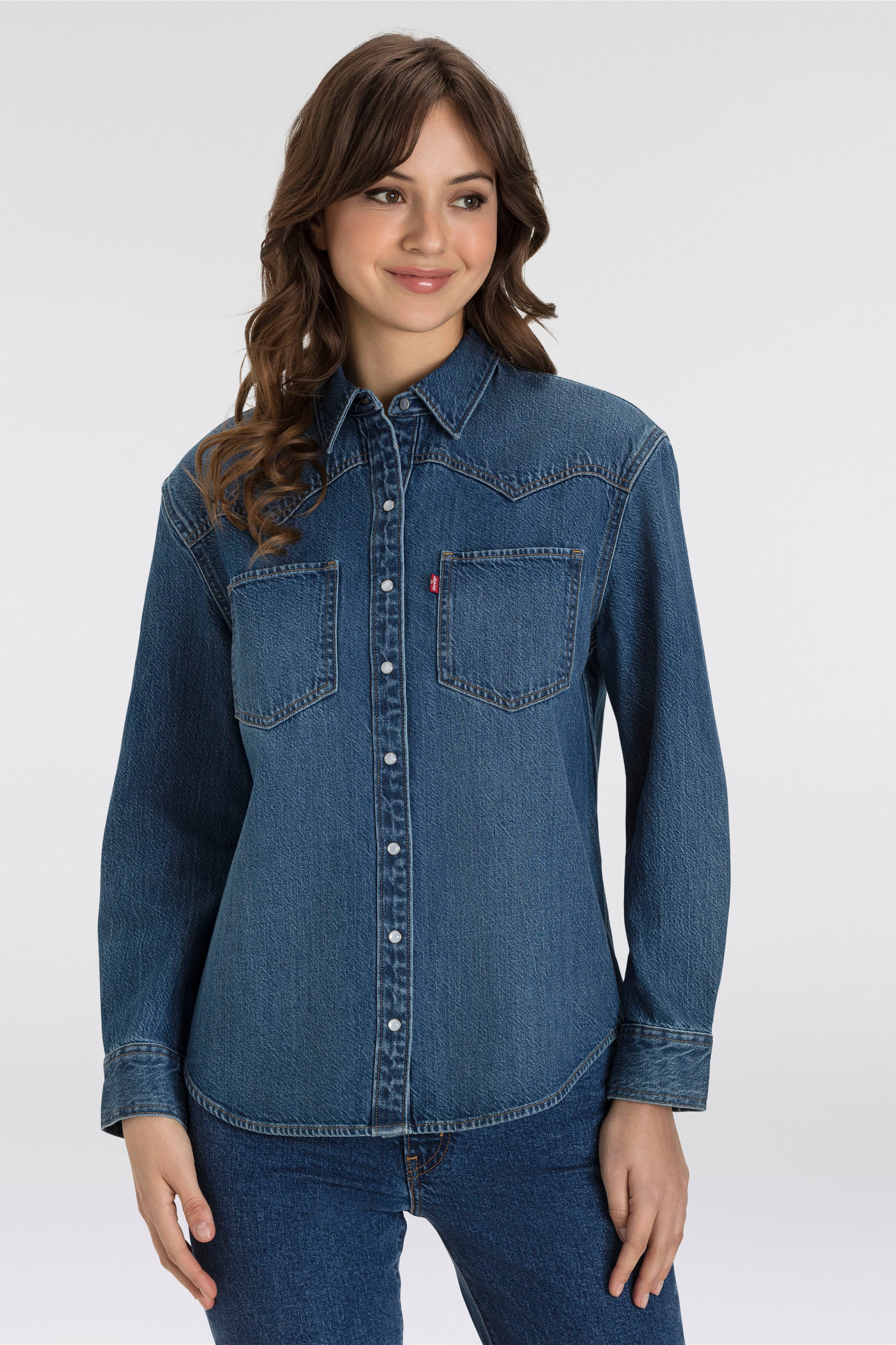 Mit der Jeansbluse »TEODORA WESTERN SHIRT« von Levi's® stellst du im Handumdrehen ein neues Outfit zusammen. Mit den Druckknöpfen hast du eine größere Öffnung, bei der du dir beim An- und Ausziehen keine Gedanken über deine gemachten Haare machen musst. Diese Bluse ist hüftbedeckend.