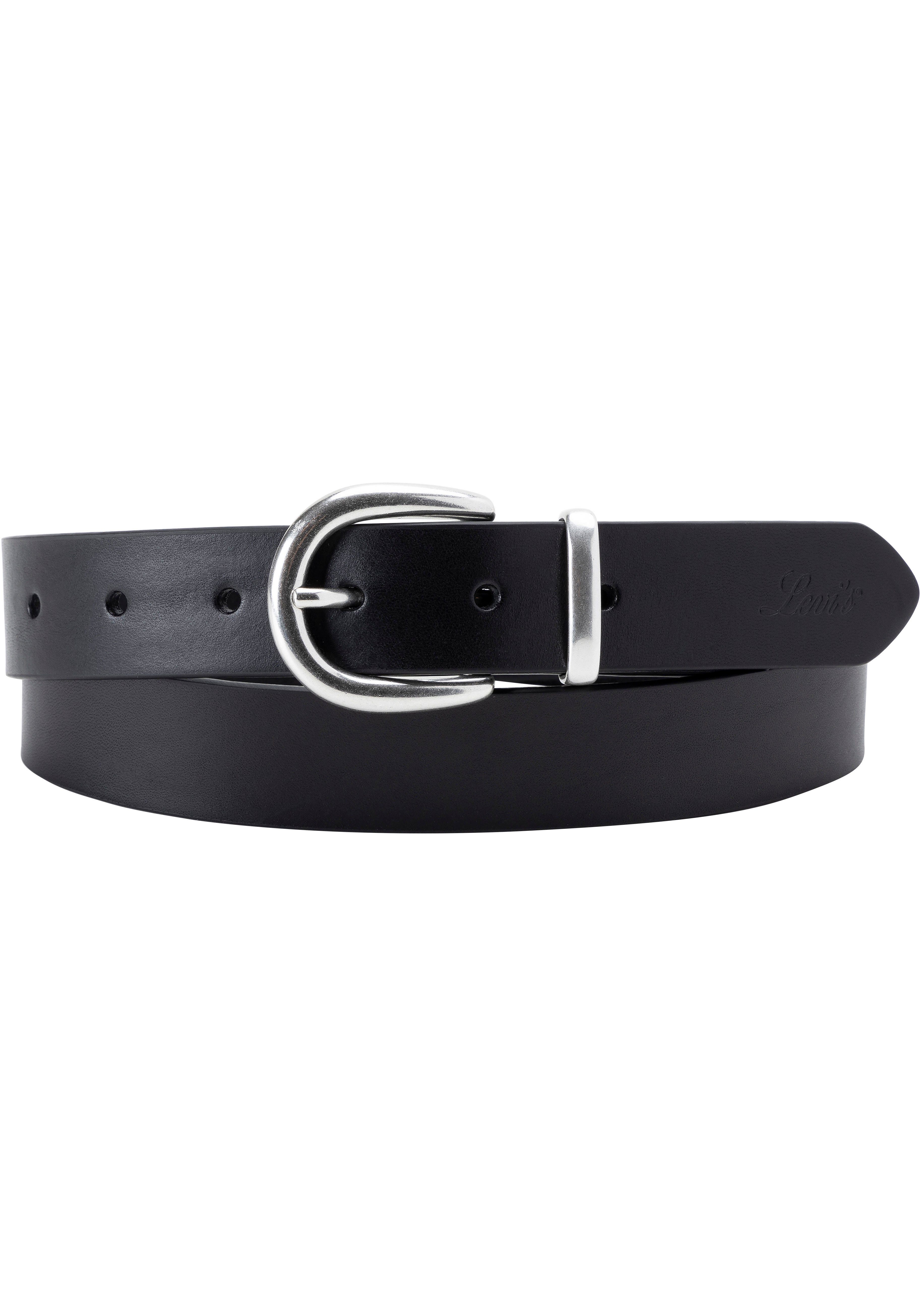 Dieser Ledergürtel »WOMEN'S PHOEBE BELT« von Levi's® macht Schluss mit rutschenden Hosen und verschafft deiner Hose den optimalen Sitz. Die schlichte Einfachdornschließe aus Metall ermöglicht es dir, den Gürtel unkompliziert und stufenweise zu verstellen. Das Uni-Design ist elegant und passt zu schlichten Outfits genauso gut wie zu ausgefalleneren Stylings. Das hochwertige Rindnappaleder ist geschmeidig und langlebig. Es verleiht dem Gürtel einen charakteristischen Look und lässt sich gut kombinieren.