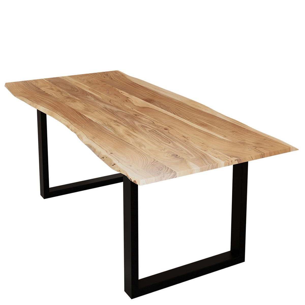 Das Gestell besteht aus robustem Metall und ist in Schwarz lackiert. Je nach Geschmack können Sie zwischen drei Вариантыn wählen: klassischer U-Form, markanter X-Form oder dem eleganten Spider-Gestell. Все drei Ausführungen sorgen für Stabilität und setzen in Kombination mit der natürlichen Akazienholzplatte moderne Akzente im angesagten Industrial-Style.
