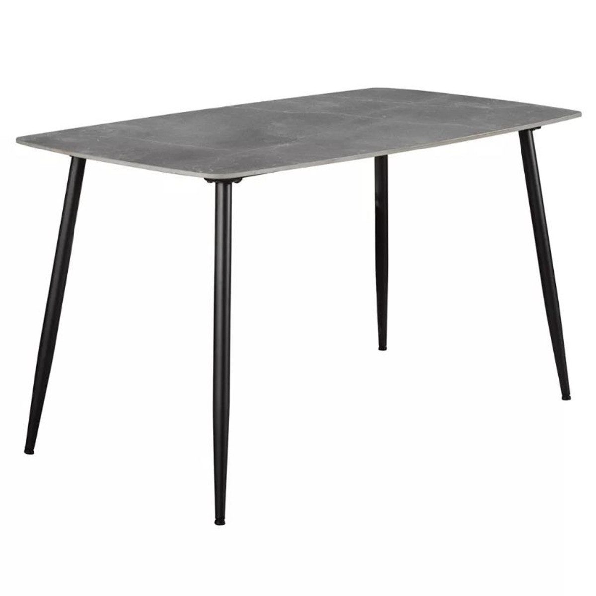 Die rechteckige Keramik-Tischplatte in sanftem Grau mit abgerundeten Ecken verleiht dem Miami Tisch ein zeitgemäßes Design. Die marmorierte Oberfläche harmoniert perfekt mit den schlanken, schwarzen Metallbeinen und schafft einen eleganten, modernen Look, der sich vielseitig kombinieren lässt.