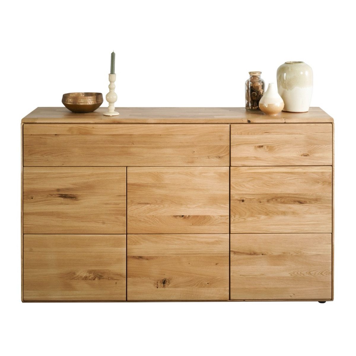 Die klare, puristische Formgebung der Genf Kommode bringt die Schönheit der Wildeiche perfekt zur Geltung. Grifflos gestaltete Fronten fügen sich harmonisch ins Gesamtbild ein und sorgen für eine moderne Optik. Dank der komfortablen Tip-on-Funktion lassen sich Türen und Schubkästen durch leichten Druck mühelos öffnen und schließen – ideal für ein stilvolles und aufgeräumtes Zuhause.