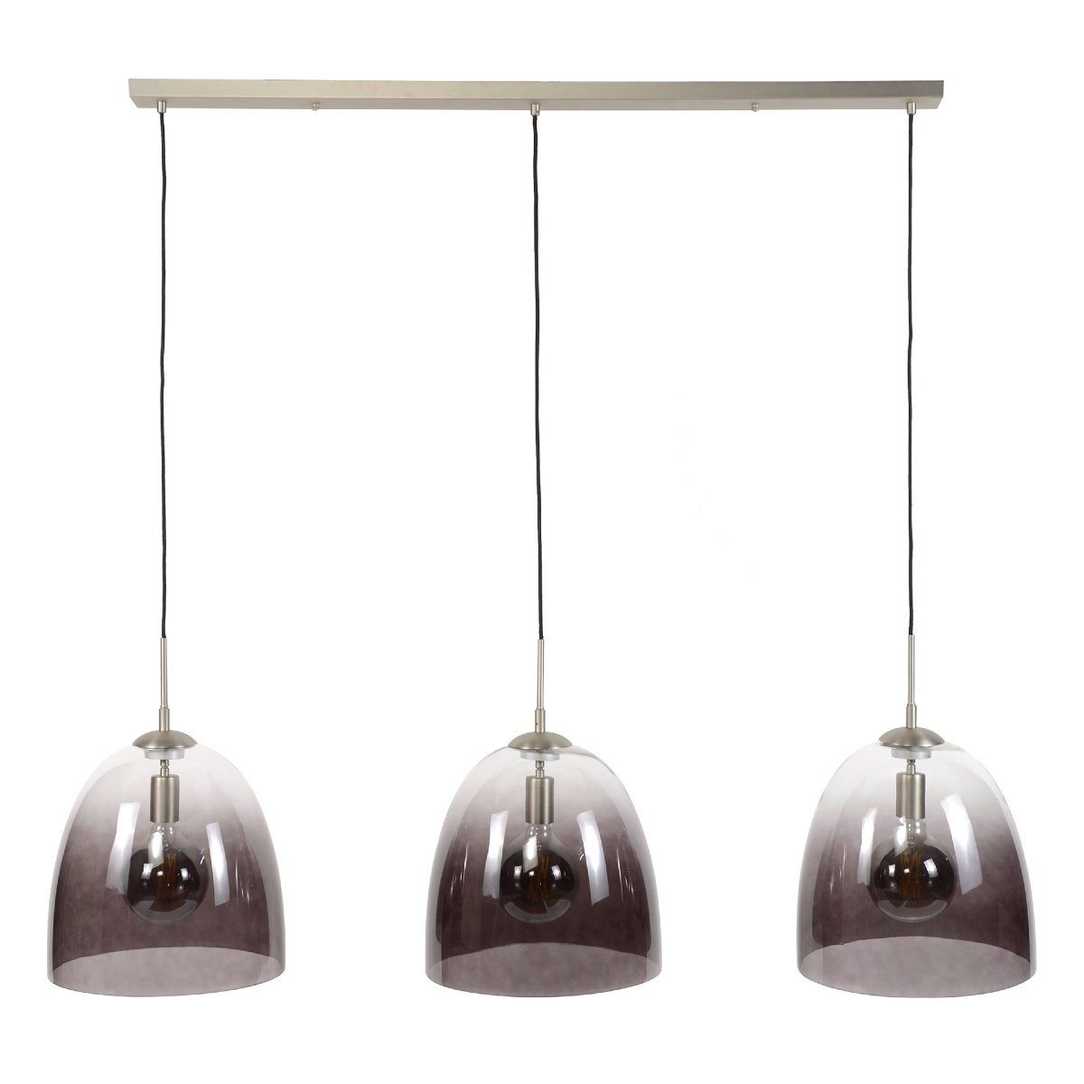 Der ovale Glasschirm besitzt einen Durchmesser von 40 cm (bei der 2-flammigen Варианты) oder 33 cm (bei der 3-flammigen Cibola). Das Glas ist in Rauchgrau getönt und besitzt einen harmonischen Farbverlauf von oben nach unten. Dadurch werden Blendeffekte vermieden und das Licht gedämpft und harmonisch abgegeben. Durch die längliche Form eignet sie sich besonders für Ihren Esstisch oder die Kücheninsel und spendet gemütliches, diffuses Licht. Die Kabellänge beträgt 150 cm und lässt sich bei der Montage auf die benötigte Raumhöhe anpassen.