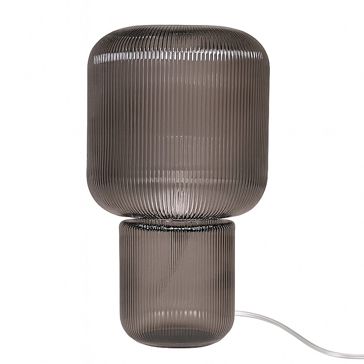 Dank des getönten, strukturierten Glases strahlt die Aya ein sanftes, blendfreies Licht aus, das für eine behagliche Stimmung sorgt – perfekt für den Einsatz im Wohnzimmer, Flur oder Schlafzimmer. Mit einem Durchmesser von 23 cm und ihrer Höhe von 39 cm eignet sie sich hervorragend für Nachttische, Sideboards oder Kommoden.