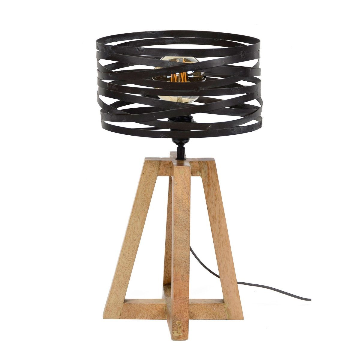 Das gekreuzte Holzgestell der Leuchte sorgt für Stabilität und gibt jedem Raum eine warme und einladende Atmosphäre. Der gedrehte Metallschirm ist in Schiefergrau gehalten und erzeugt einen faszinierenden Effekt, der den Raum auf einzigartige Weise erhellt. Durch die Bänder, die sich um das Leuchtmittel schlingen, dringt das Licht zwischen dem Metallband hindurch, sodass ein gemütliches Licht- und Schattenmuster erzeugt wird.