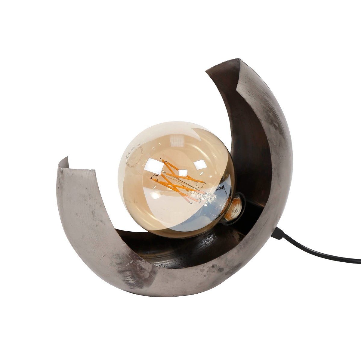 Die Leuchte besitzt eine Höhe von kompakten 25 cm und besteht aus Metall mit einem silbernen Finish, das auf der Leuchte eingebrannt wurde. Jede Leuchte ist somit ein tolles Unikat und ein Blickfang auf Sideboards, Kommoden oder Beistelltischen. Die Tischlampe ist nicht nur ein funktionaler Lichtspender, sondern auch ein ästhetisches Statement. Die Fassung ist sichtbar, sodass sie die Optik der Leuchte durch ein passendes Leuchtmittel beeinflussen können.