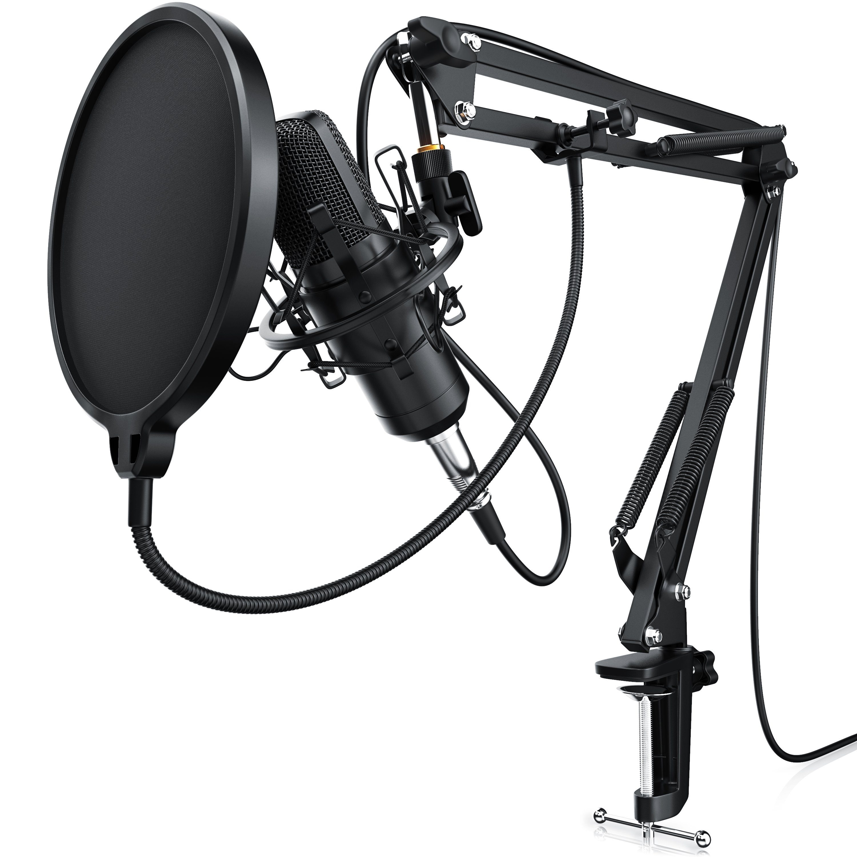 Lieferumfang | LIAM DAAN Profi Podcast-Set (Mikrofon + Windschutz + Mikrofonarm und -spinne + Popschutz +3,5mm Klinke zu XLR Kabel + 3/8" auf 5/8" Gewindenuss) |