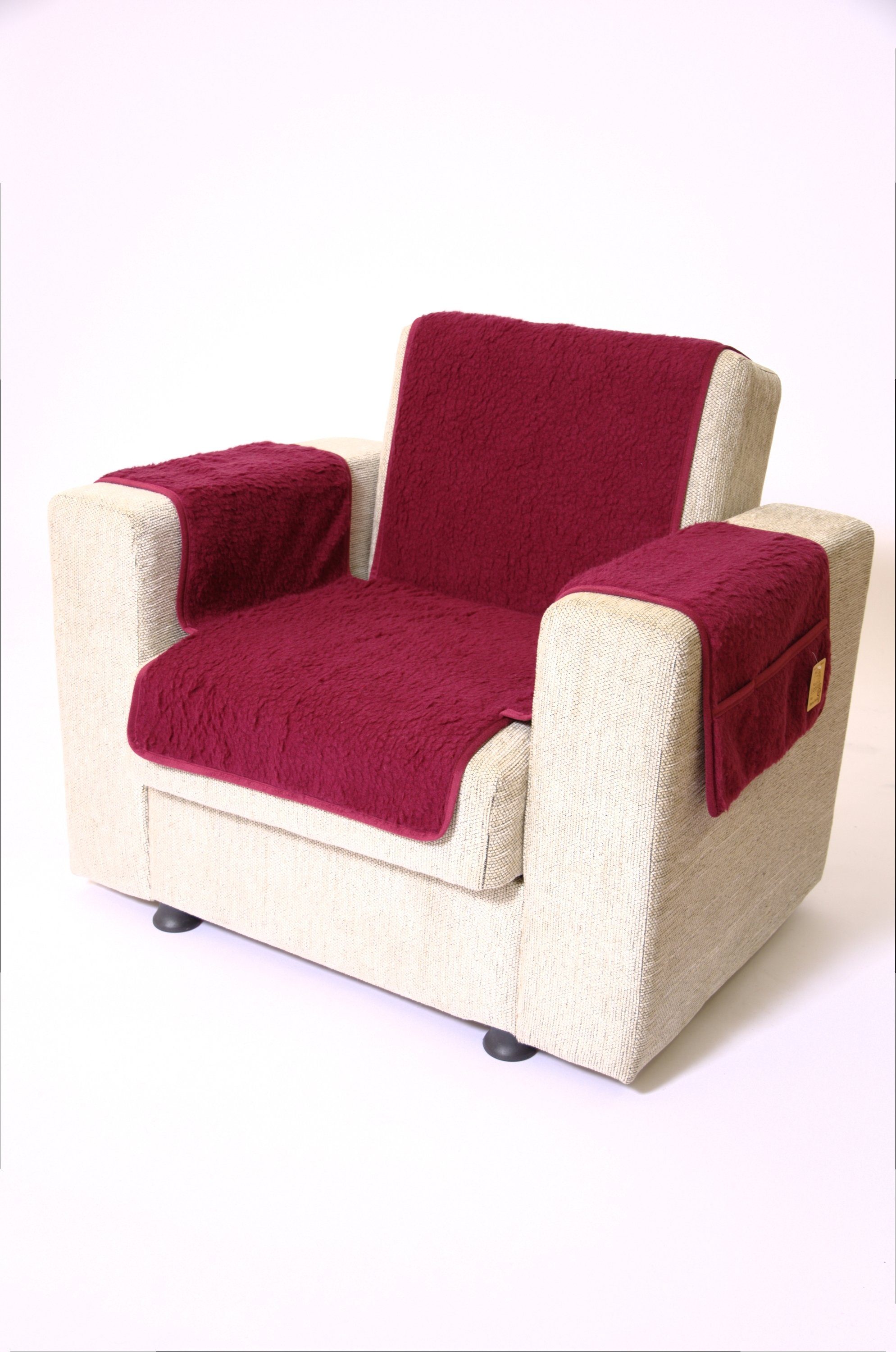 Hussen-Set Kombinierter Armlehnen- und Sesselschoner Wolle bordeaux 150 cm x 50 cm + 2 mal 70 cm x 40 cm mit 2 Taschen