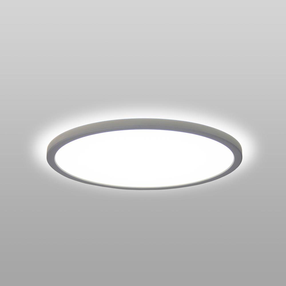 Mit dieser schlichten und zeitlosen LED-Deckenleuchte Board von Licht-Trend setzen Sie auf eine innovative und leistungsstarke Beleuchtung. Mit der Lichtfarbe neutralweiß (4.000 Kelvin), einer Lichtstärke von 1.600 Lumen und ihrem blendfreien Licht, eignet sich diese LED-Deckenlampe besonders in Arbeitsräumen, Vorratsräumen oder im Flur. Des Впередen hat die Leuchte einen Durchmesser von 29cm und eine sehr geringe Aufbauhöhe von 2,3cm. Die dimmbare LED-Deckenleuchte sorgt mit ihren direkten und indirekten Lichtanteil für sehr angenehme Lichtverhältnisse. Dimmen Sie die LED-Deckenleuchte einfach mit Ihrem Wandschalter, indem Sie durch Ein- und Ausschalten die Helligkeit der Leuchte von 100% auf 50% und 20% regulieren.