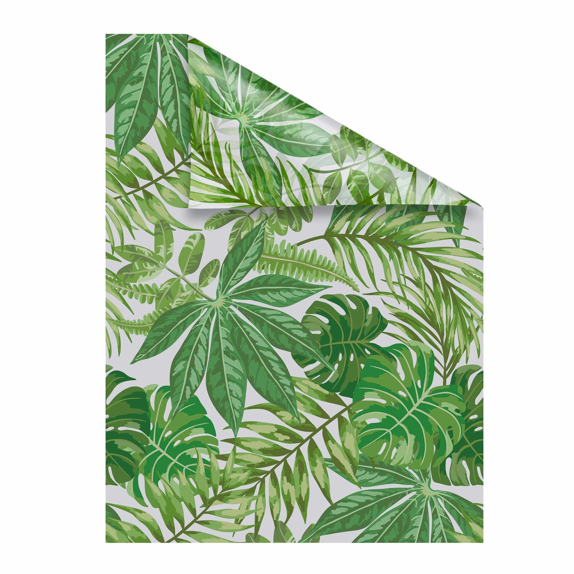 Sie sind zurück! Botanische Muster bringen ein aufregendes, exotisches Flair in Ihre 4 Wände und sind angesagter denn je! Die kräftigen Grüntöne bringen nicht nur tropische Lebensfreude nach Hause, sondern laden ein von exotischen Orten zu träumen. Holen Sie sich mit unserer Fensterfolie 'Palmenblätter' den angesagten Tropen Look nach Hause und setzen Sie ein Highlight an Ihrem Fenster. Hiermit können Sie sich modern und stilvoll vor den neugierigen Blicken der Nachbarn schützen! Diese Fensterfolie dient nicht nur als Sichtschutz, sondern zaubert bei Sonnenschein auch ein herrliches Lichtspiel in den Raum. Es ist eine perfekte Möglichkeit für Ihre individuelle Dekoration von Fenstern und Glasuntergründen. Diese Folie hat durch ihre transparente und matte Oberfläche die Eigenschaft Sicht- und Blendschutz, Sonnenschutz sowie lichtdurchlässig zugleich zu sein. Ob als wirkungsvolle Bereicherung im Wohnbereich oder in der Dusche. Genießen Sie eine wunderschöne Dekoration mit brillantem Digitaldruck, und setzen Sie Ihre Glasscheiben perfekt in Szene. Die Einsatzmöglichkeiten dieser Folie scheinen schier grenzenlos, Sie können damit nicht nur Ihre Fenster verschönern, auch an Duschkabinen, Raumteilern oder anderen Glas- und Spiegelflächen, bewirkt sie Wunder. Im Schlafzimmer und Umkleiden dient sie als sicherer Sichtschutz, im Wohnzimmer und Küche entsteht eine angenehme, gleichmäßige Lichtstimmung. Im Büro dient die Sichtschutzfolie als wirksamer Blend-/Sonnenschutz. Впередe Möglichkeiten sind Möbeldekoration oder gar als Spritzschutz in der Küche. Die Besonderheit dieser Folie liegt in der unkomplizierten Montage, die ohne Rakel oder Wasser durchgeführt werden kann. Durch den punktförmigen Klebeauftrag haftet die Folie nicht zu fest und lässt sich leicht ohne Blasenbildung anbringen und auch das Lösen und Neupositionieren wird zum Kinderspiel. Hinweise: Der Lieferumfang besteht aus der bedruckten Folie, geschützt durch das Trägermaterial sowie einer Montage- bzw. Verklebeanleitung. Sie können die Glasfolie individuell auf Ihre Anforderungen zuschneiden. Bei unseren Fensterfolien handelt es sich um Polyvinylchlorid (PVC), welches mit einem alterungsbeständigen und dauerelastischen, permanent klebenden Acrylatkleber beschichtet ist. Die Folie ist robust, schmutz- und wasserabweisend. Der Druck erfolgt mit 100 % lösemittelfreier Latextinte. Anzahl Teile: 1. Funktionen: Sichtschutz. Dekoration. Empfohlene Anwendungsbereiche: Innenbereich. Transparenz: blickdicht. Art der Montage: Klebepunkte. Geeignete Untergründe: glatte Glasflächen. Material: PVC. Folienstärke (µm): 170. Design: floral. Motiv. Milchglasoptik. Motiv: Palmen. Oberflächenstruktur: strukturiert. Hinweise zur Funktion: Unerwünschte Blicke möchten Sie draußen lassen? Gerade in der dunklen Jahreszeit kann eine entsprechend dekorative Folie auch in dieser Hinsicht sehr hilfreich sein.
