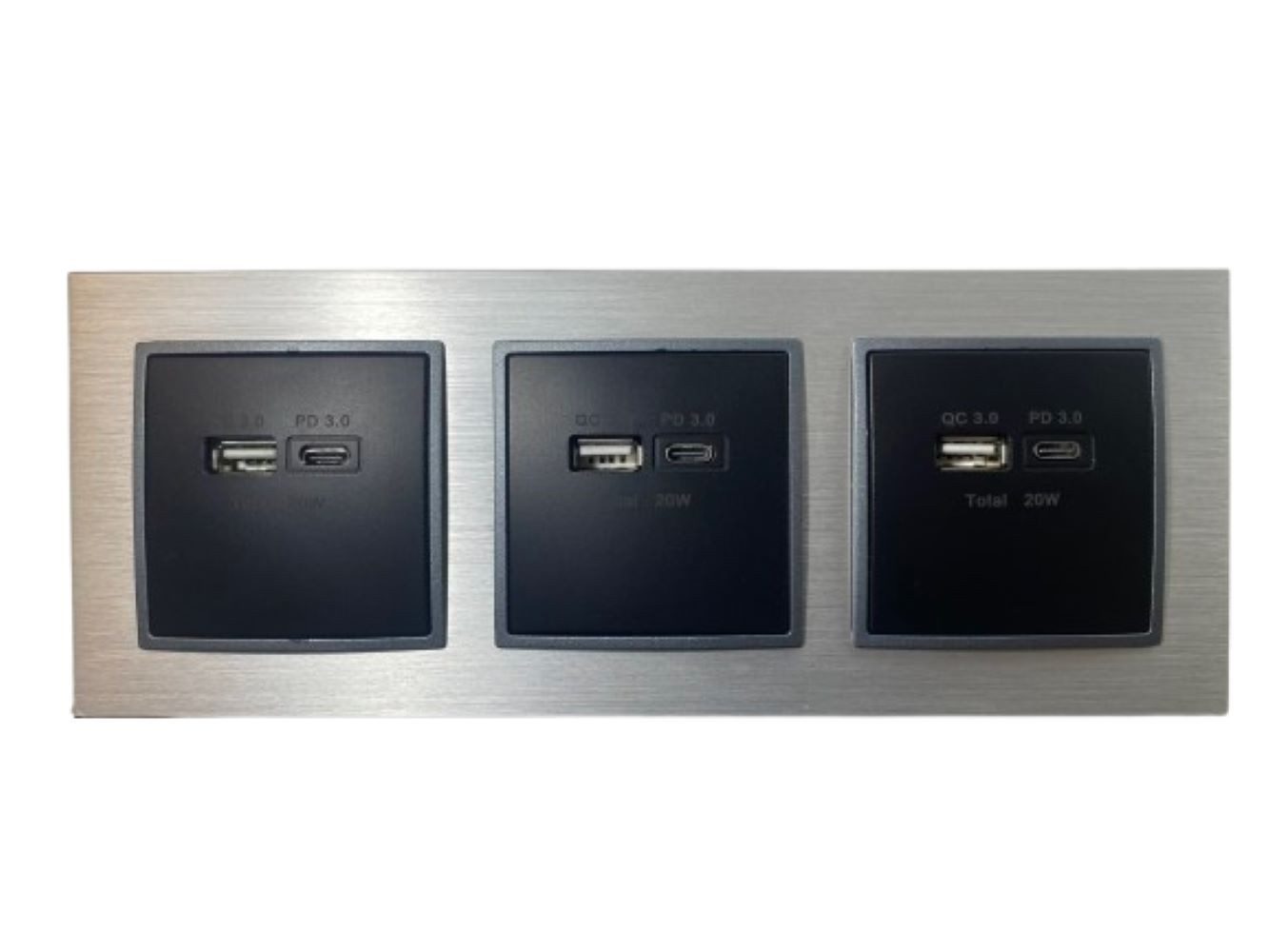 Hier drei USB 2-fach Ladedosen mit je 1 x USB-A und 1 x USB-C.
