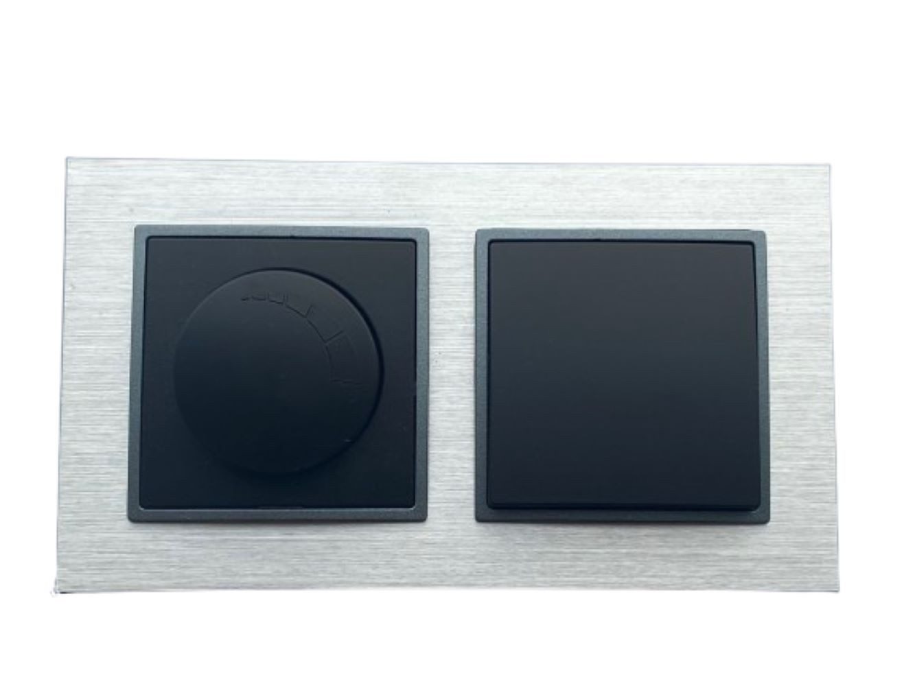 Hier ein Wechselschalter und ein Dimmer im 2-fach Rahmen ABELKA ALU.
