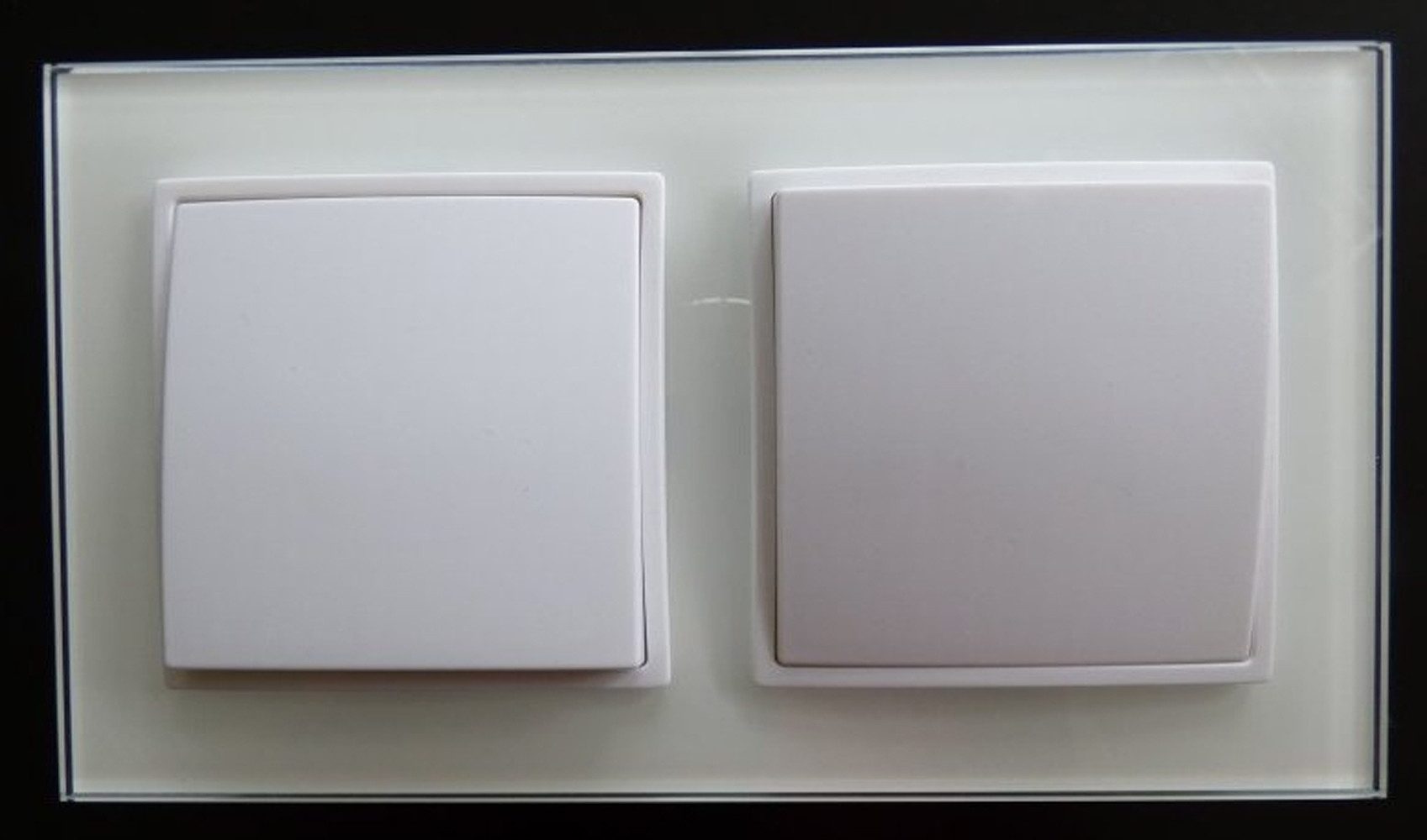 Wechsel Schalter im GLAS Ausführung weiß im 2-fach Rahmen.