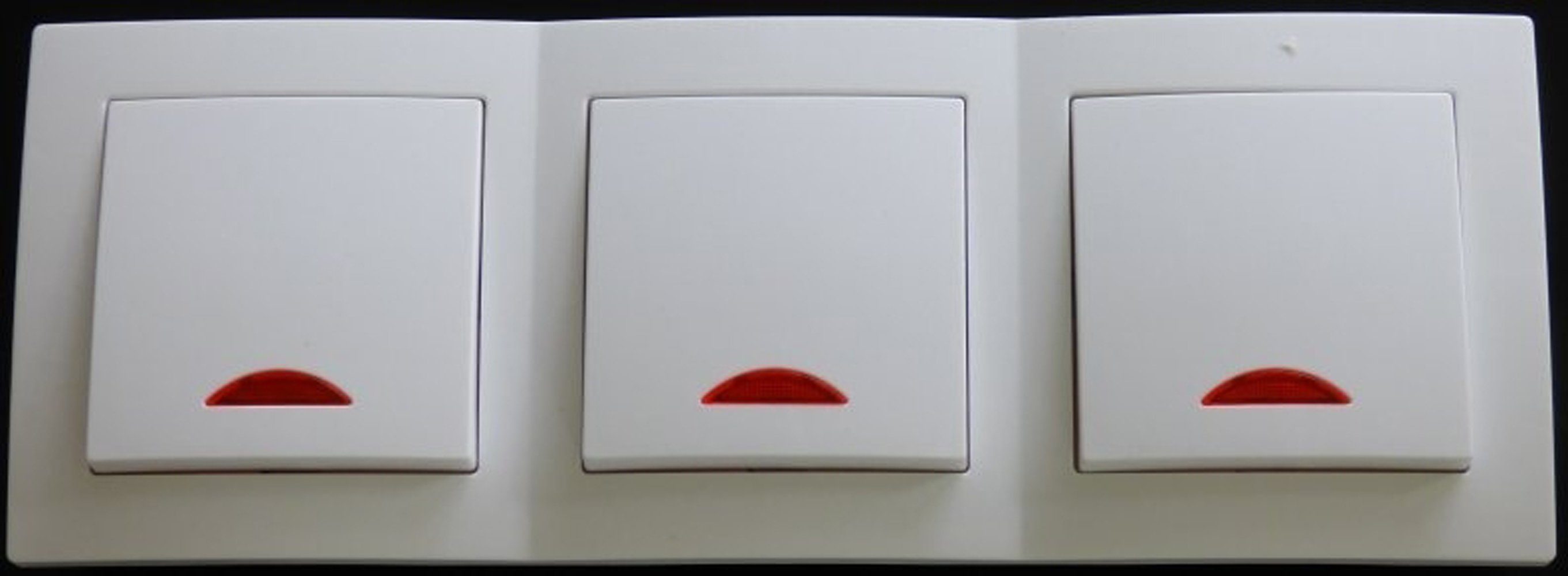 3-fach Schalter mit Kontroll-Lampe aus der Serie Levina in Kunststoff Ausführung weiss für moderne Raumgestaltung.