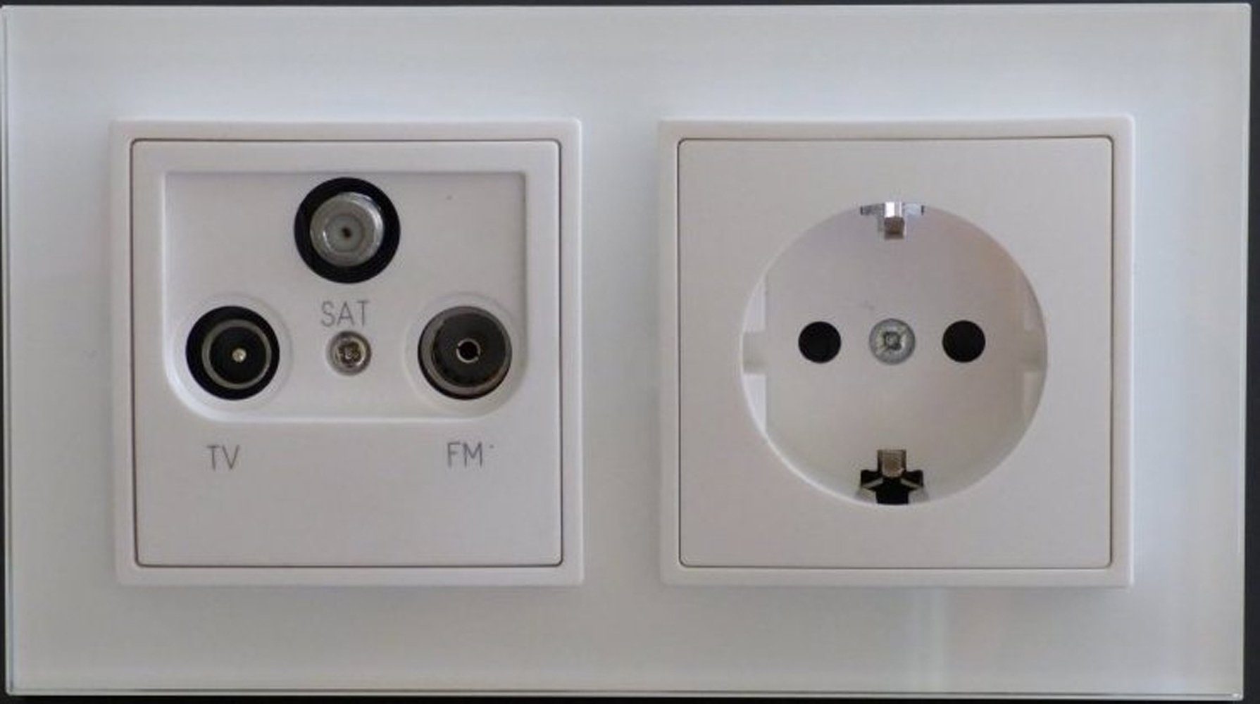 ABELKA Nuovo Antennen Dose mit Steckdose in Glas mit funktioneller, praktischer Technik und natürlich schönem GLAS Design.