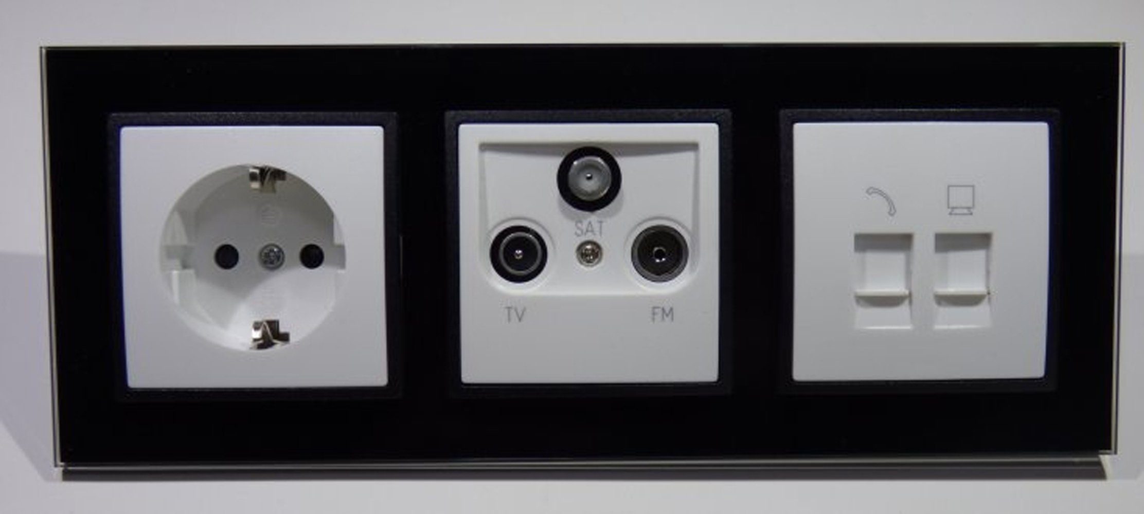 Schalter Kombination mit Glasrahmen aus der Serie Abelka Nuovo in schwarz für moderne Raumgestaltung.
