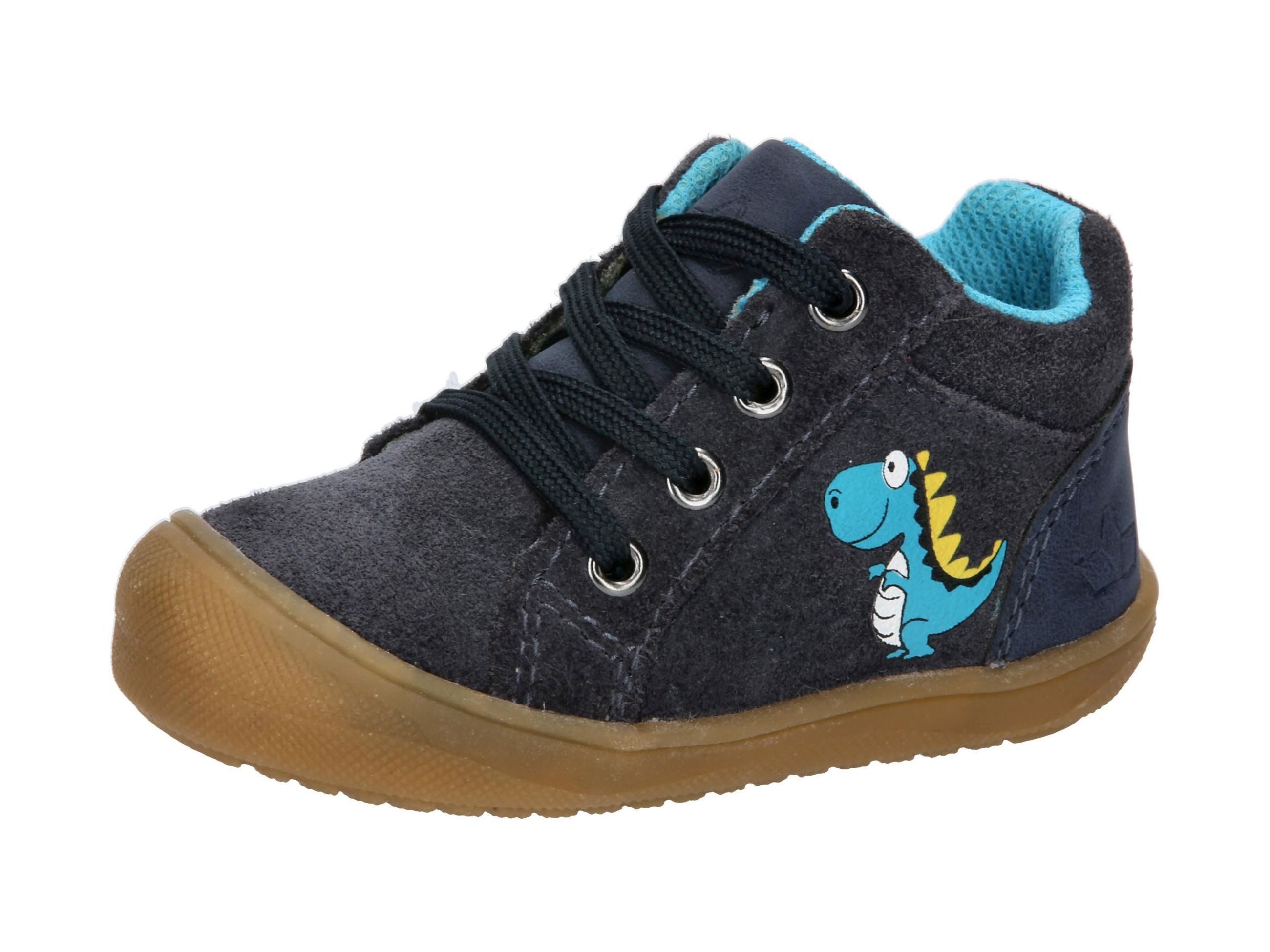 Der Lauflernschuh Kalani der renommierten Marke Lico ist der perfekte Begleiter für die ersten Schritte Ihres Kleinkindes. Hergestellt aus hochwertigem Veloursleder, bietet der Schuh eine ansprechende Optik und herausragende Haltbarkeit. Die klassische Schnürung sorgt für eine optimale Anpassung und sicheren Halt. Im Inneren ist der Kalani mit einem weichen Textilfutter ausgestattet, das den Fuß angenehm umschließt und für ein gesundes Fußklima sorgt. Die textile Einlegesohle bietet zusätzlichen Komfort und unterstützt die natürliche Fußentwicklung. Besonders hervorzuheben ist die flexible TPR-Laufsohle, die dem Schuh eine ausgezeichnete Biegsamkeit und Rutschfestigkeit verleiht, wodurch die natürlichen Bewegungen und die Stabilität des Kleinkindes gefördert werden. Der Kalani von Lico vereint Funktionalität und Design und ist somit die ideale Wahl für kleine Entdecker.