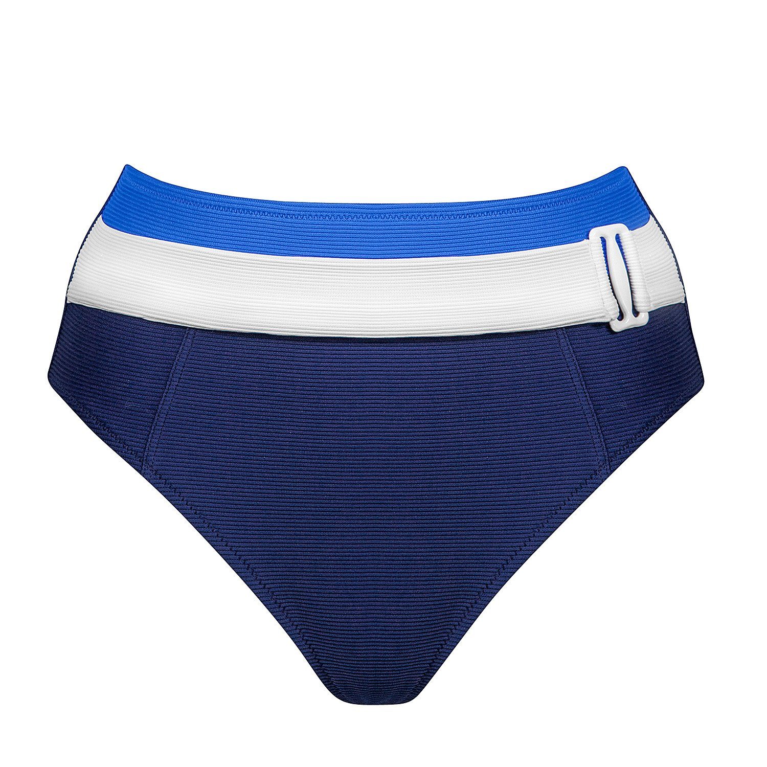Bikini Slip aus der Contrast Kollektion von Lidea Artikeldetails: - Bikini Slip im Retro-Stil mit Gürtel-Detail inkl. dekorativer Metall-Schnalle in Weiss - taillenhoch geschnitten, Kontrastblende vorderseitig am Bund - gerippter Stoff, Voderteil komplett unterfüttert - gemäßigter Beinausschnitt - bedeckt den Po vollständig - Material: 90% Polyamid, 10% Elasthan - Futter aus 84% Polyamid, 16% Elasthan - Pflegehinweis: Handwäsche empfohlen, mildes Feinwaschmittel ohne Weichspüler, bitte im Schatten trocknen Dazu passendes Bustier Bikini Top ist separat erhältlich. Lidea Contrast - Beachwear im Colorblocking Dessin für einen modernen Look.