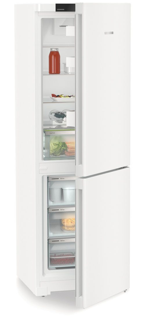 Die Kühl- und Gefrierkombination »CNc 5203_994898151« von Liebherr hat eine hohe Funktionalität sowie die Energieeffizienzklasse C (Skala Energieeffizienz-Klassifizierung A bis G) und ist freistehend. Das Gerät bietet ausreichend Platz für deinen Einkauf durch seine Maße von 59,7 x 185,5 x 67,5 cm (B/H/T) und das Gefriervolumen von 103 l und Kühlvolumen von 227 l. Das Betriebsgeräusch des Modells liegt bei 35 dB. Regelmäßiges Abtauen ist mit der No Frost-Funktion passé – ein Umluftsystem leitet die Luftfeuchtigkeit aus dem Gefrierraum ab, wodurch das Gerät nie wieder abgetaut werden muss. Es sind drei Gefrierschubladen zum Verstauen des Einkaufs integriert. Die Kühl- und Gefrierkombination hat vier Ablageflächen aus Glas, die viel Platz für Lebensmittel bieten. Zusätzliche Flexibilität bei der Aufbewahrung bieten die drei Türablagen. Wenn die Tür zu lange offen steht oder eine Fehlfunktion vorliegt, macht die Kühl- und Gefrierkombination über ein optisches und akustisches Warnsignal darauf aufmerksam. Den Überblick behält man außerdem dank der LED-Innenbeleuchtung. Wer auf der Suche ist nach einem Modell, das genug Raum für Lebensmittel bietet, der trifft mit der »CNc 5203_994898151« von Liebherr eine gute Wahl.
