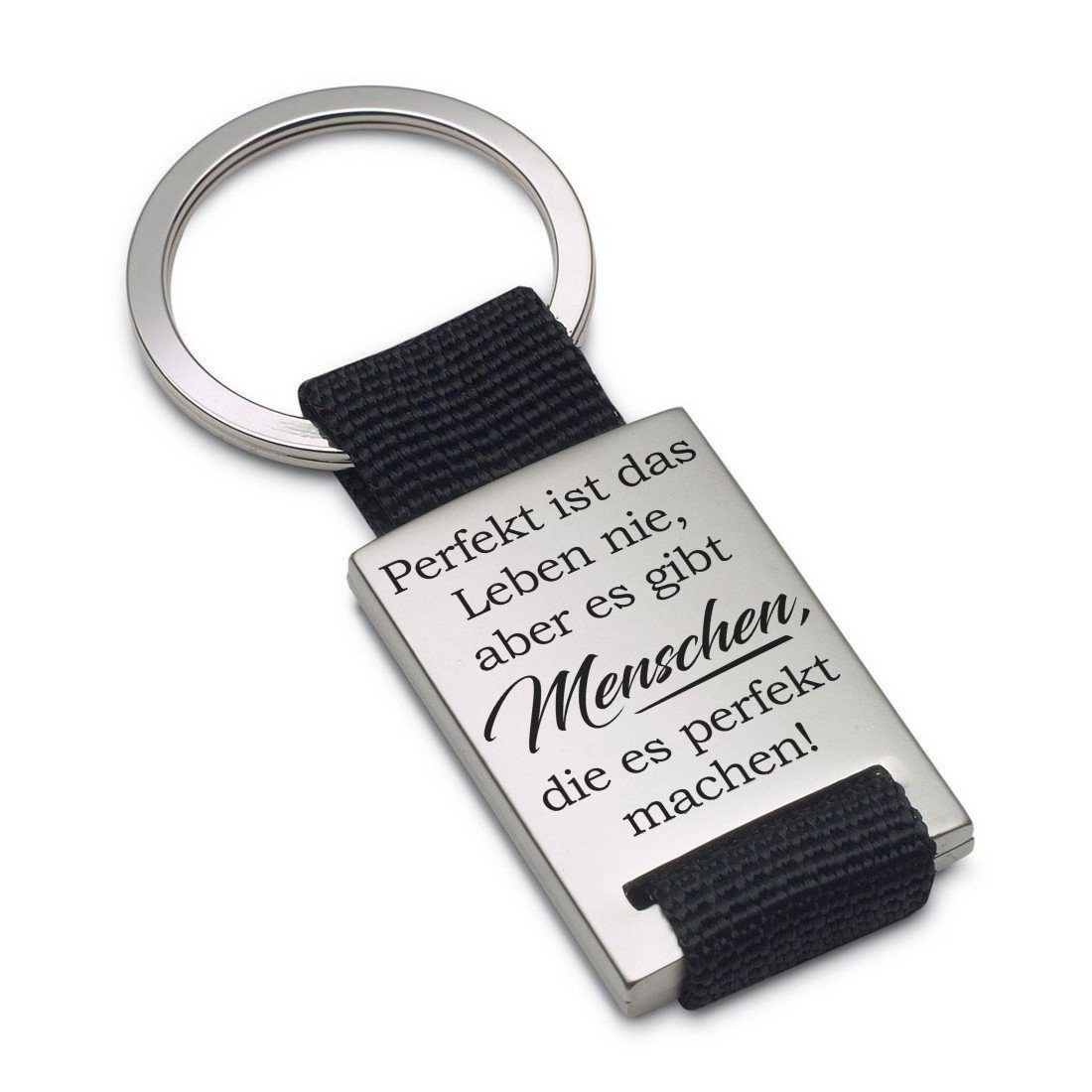 Lieblingsmensch Schlüsselanhänger Perfekt ist das Leben nie ...- ein tolles Geschenk und Glücksbringer (Schlüsselanhänger mit Gravur, inklusive Schlüsselring), Robuste und filigrane Lasergravur