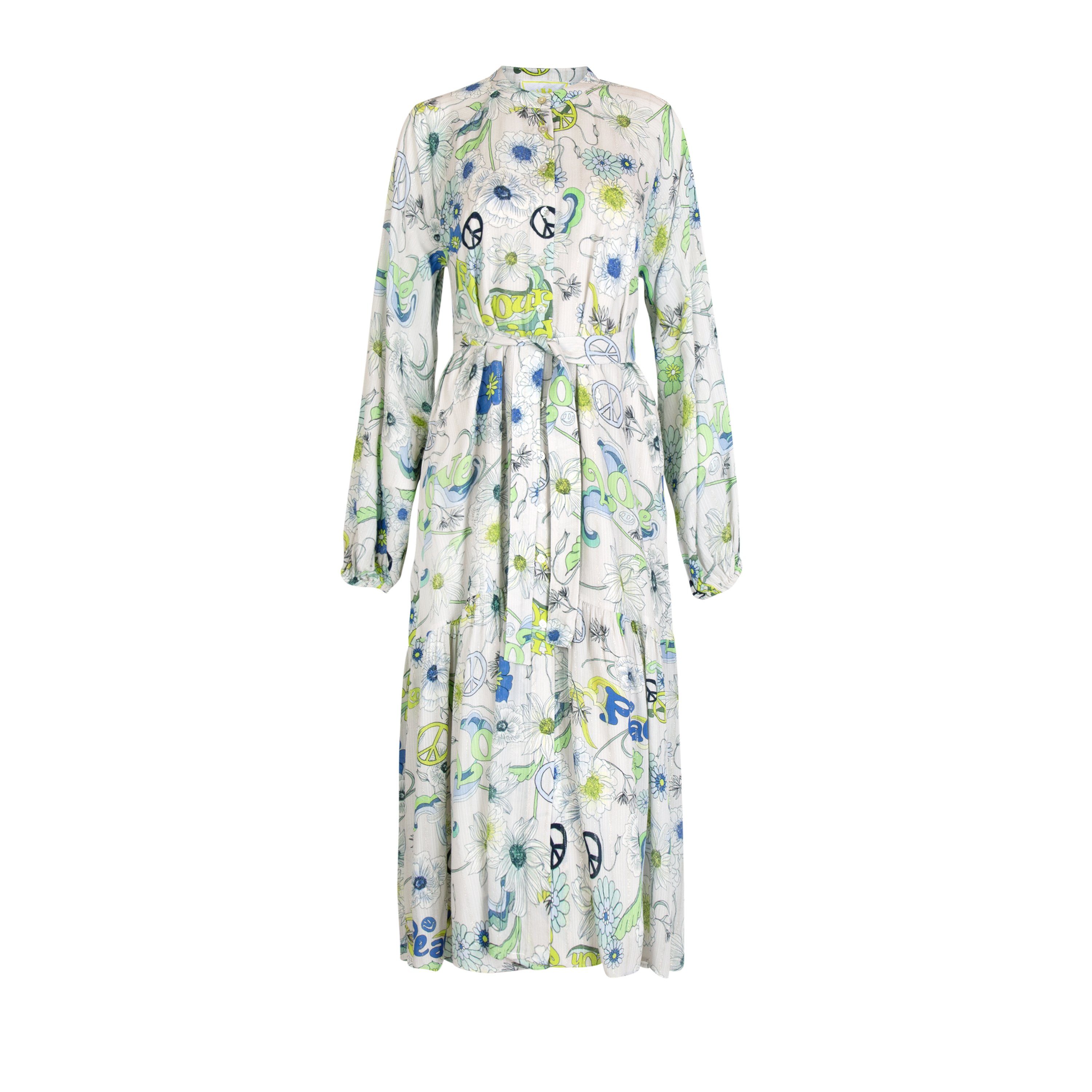 Kleid 1/1 Arm V-Ausschnitt durchgeköpft weiter Arm Raglan Druck "Flower Power"