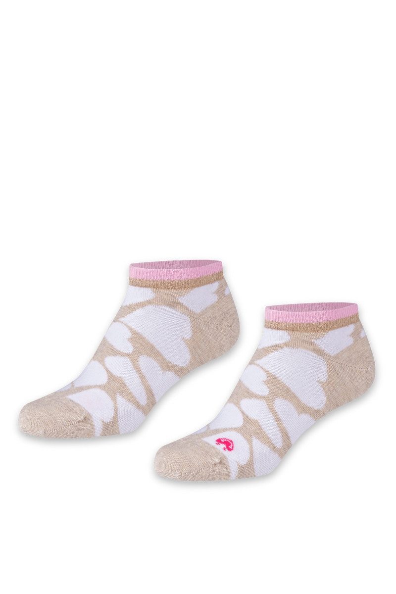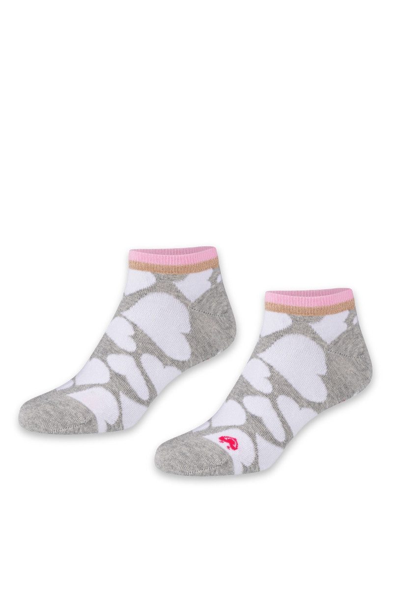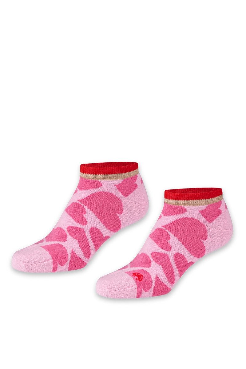 Sommerliche Damen Sneaker Socken mit Herzmotiven und Glitzerbund – ein echter Hingucker
