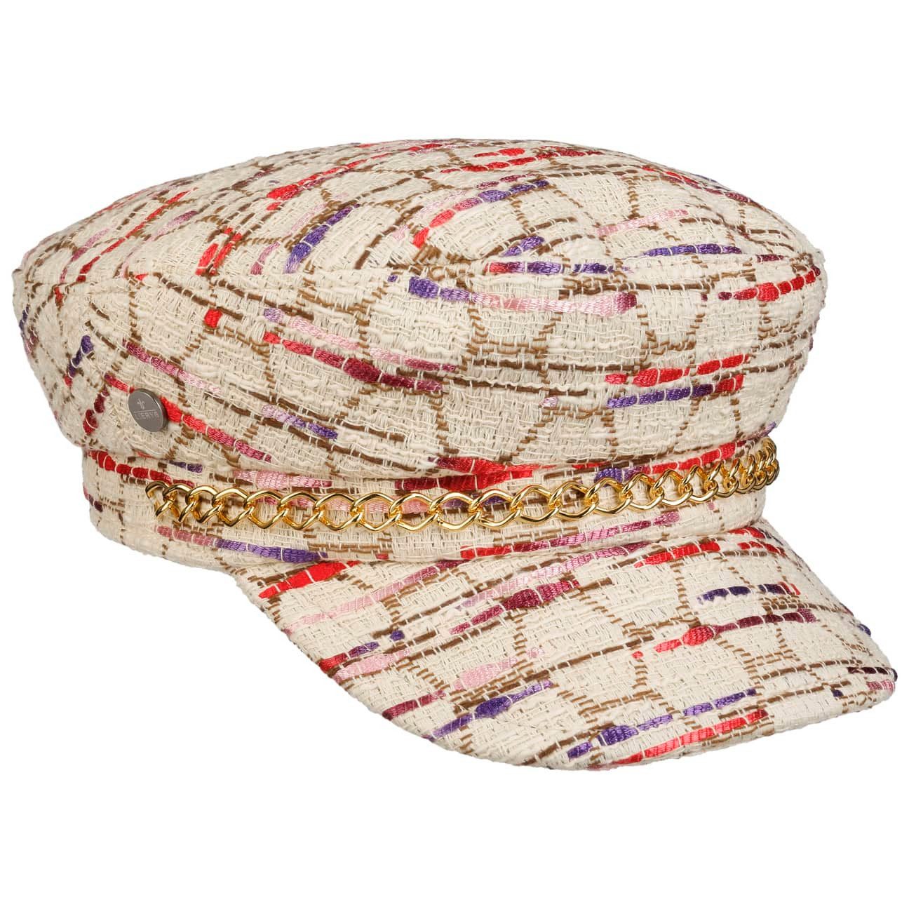Maritimer Sommerflair. Die Elbseglermütze interpretiert die klassische Kapitänsmütze neu und verbindet ihre markant flache Form mit zeitgemäßer Eleganz. Charakteristisch fallen die tief angesetzte Krempe, die dekorative Metallkette und die stilvolle Silhouette ins Auge – ein Design, das von der Seefahrt inspiriert wurde. Lierys verarbeitet recycelte Baumwolle, ergänzt durch ein weiches Baumwollfutter für angenehmen Tragekomfort auch an warmen Tagen. Der mehrfarbige Stoff und das florale Innenfutter setzen modische Akzente, während nachhaltige Materialien überzeugen. Hergestellt in Italien, beweist diese Kopfbedeckung stilbewusste Lässigkeit und umweltfreundliches Design. Ein modischer Begleiter für sonnige Stunden am Wasser.