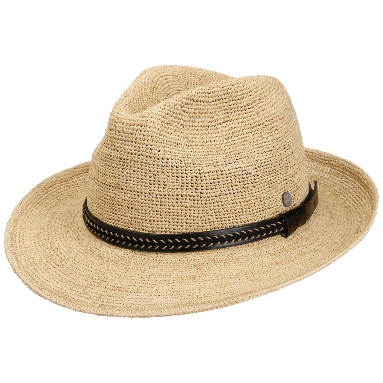 Stilvolle Leichtigkeit im Sonnenschein. Der klassisch inspirierte Bogarthut präsentiert sich mit markanter Fedora-Form und setzt durch das geflochtene Ledergarniturband von Lierys einen modernen Akzent. 100% handgehäkeltes Raffiastroh vereint sommerliche Leichtigkeit mit angenehmer Luftigkeit und sorgt für ein komfortables Tragegefühl – perfekt für Urlaub, City und entspannte Stunden im Grünen. Liebevoll eingearbeitete Details wie das feine Garniturband machen diese Kopfbedeckung zu einem edlen Begleiter. Sorgfältig gefertigt in Italien zeigt er sich als authentischer Strohhut mit Charakter.