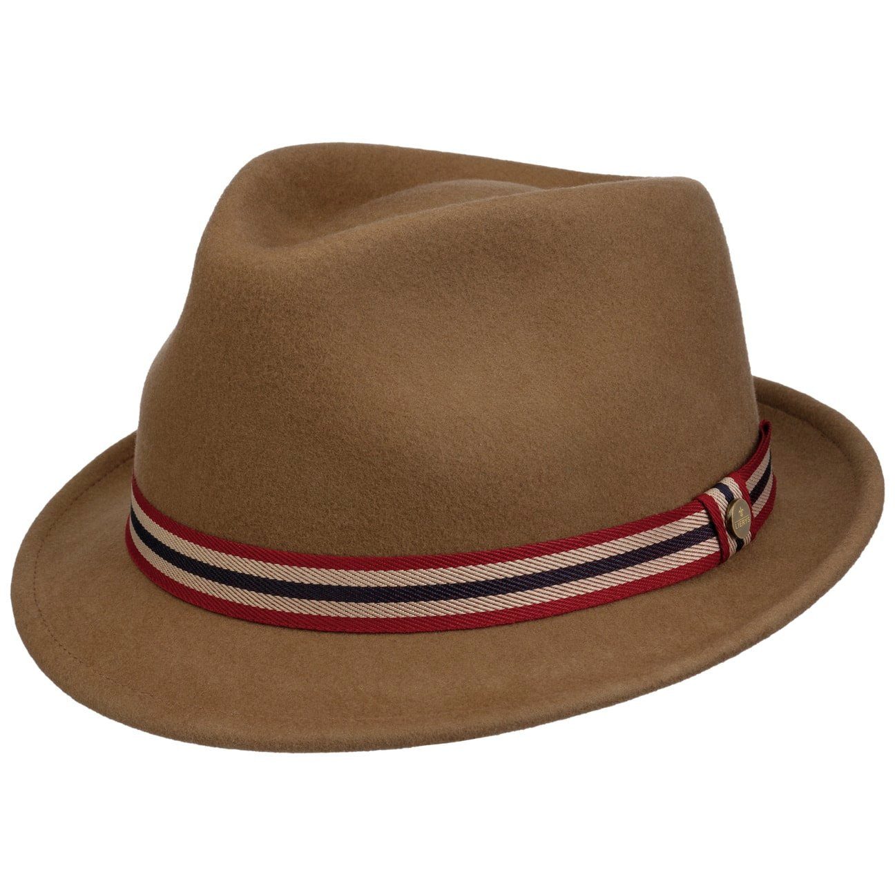 Stilvoller Begleiter für kühle Tage. Der Trilby offenbart seinen urbanen Charme durch eine markante Kopfform und eine schmal gehaltene Krempe – ein Klassiker, der an britische Huttradition erinnert. Lierys vereint bei diesem Modell fein strukturierten Wollfilz mit einem angenehm weichen Futterband aus Baumwolle und sorgt damit für anschmiegsamen Tragekomfort. Das mehrfarbige Ripsband setzt einen frischen Akzent und unterstreicht die zeitlose Eleganz dieses Filzhuts. Perfekt für stilbewusste Herren, die Modebewusstsein und Komfort schätzen, begleitet dieser Wolltrilby zuverlässig durch die Herbst- und Wintersaison.