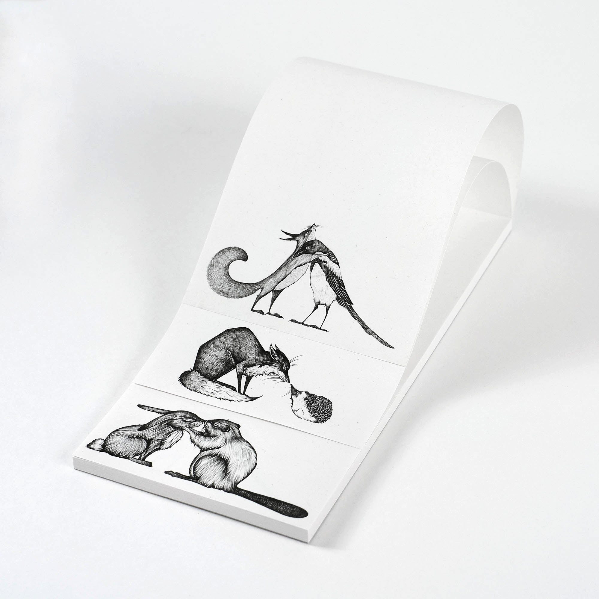 Notizblock "Kuscheltiere" mit liebevollen Tierbildern – Did you get the memo?Produktinformationen:• 45 Blatt aus 100 % Recyclingpapier ohne Lineatur (zertifiziert mit dem blauen Engel)• Größe: 8,2 x 17,4 cm• 3 verschiedene Motive: Fuchs & Igel, Kaninchen & Biber und Eichhörnchen & Elster• Nicht nur made in Germany, sondern hier bei uns im Bergischen Land• Perfektes Format für deinen Einkaufszettel• Handgezeichnete Motive von unserer Künstlerin Hanna LigetiOb für den flüchtigen Gedanken, die brillante Idee im Traum oder eine kleine Skizze zwischendurch – unser Notizblock bietet den idealen Ort dafür. 3 verschiedene Motive sorgen für Abwechslung auf jedem Blatt und bringen Liebe in deinen Alltag.