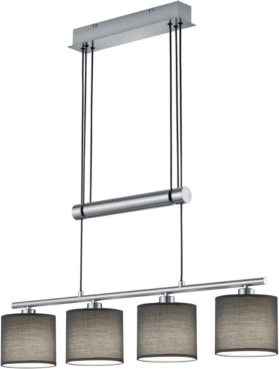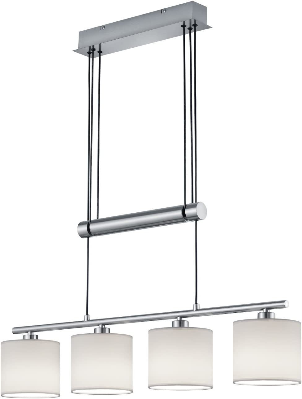 Die vierflammige JoJo-Pendelleuchte setzt Ihren Wohn- und Essbereich gekonnt in Szene und besticht durch ein schlichtes Design. Die vier Stoffschirme geben ein sanftes Licht ab und kreieren damit eine gemütliche Beleuchtung.