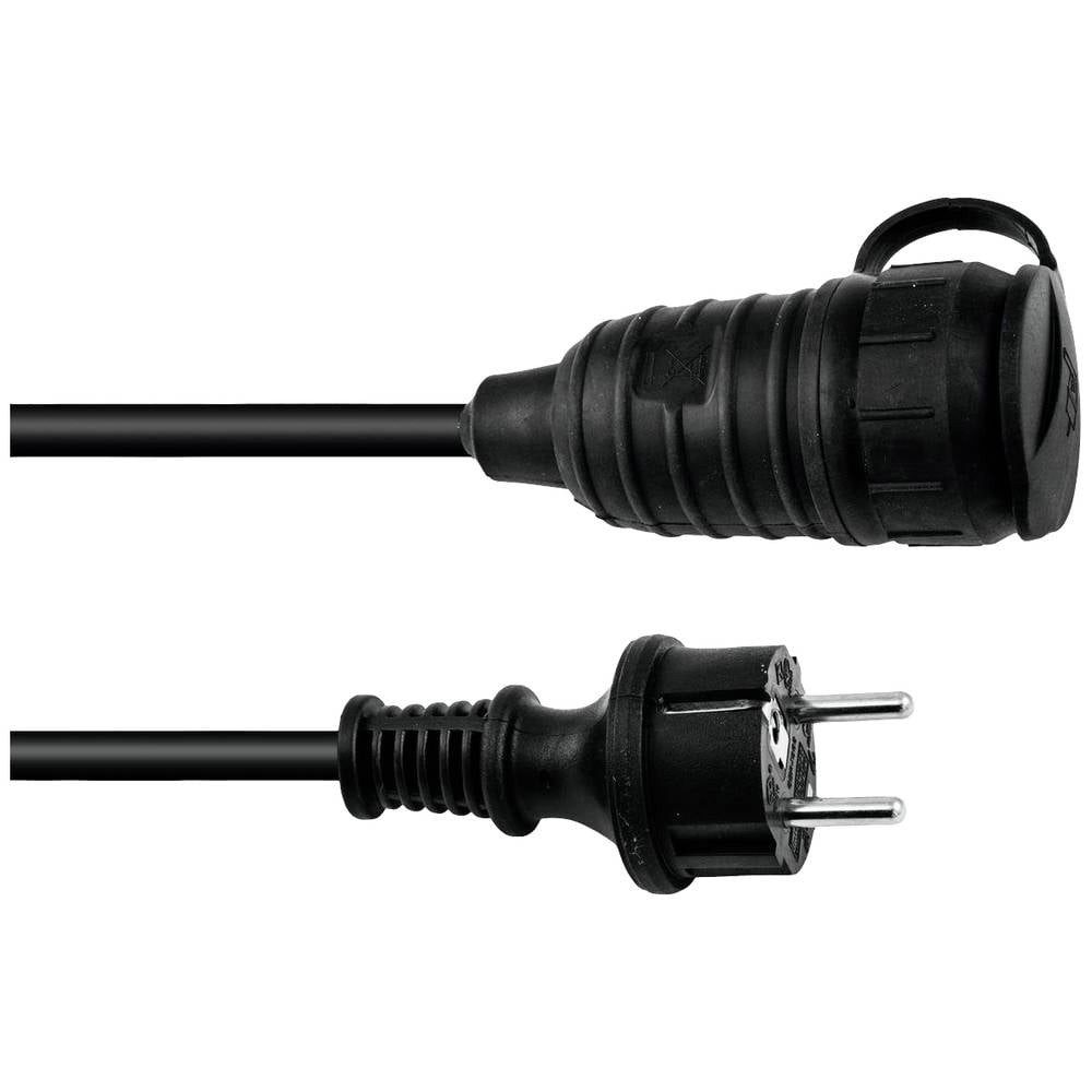 Eigenschaften | Anschlusstyp A (bzw. Eingänge): Schutzkontakt-Gummi-Stecker · Anschlusstyp B (bzw. Ausgänge): Schutzkontakt-Gummi-Kupplung · Betriebsspannung (Details): 230 V · Einsatzort: Außenbereich · Herstellerfarbe: Schwarz · Kabel-Anwendung: Strom · Kabel-Ausführung: Verlängerungskabel · Kabel-Typ nach DIN/VDE: H07RN-F 3G 1,5 mm² · Kabellänge: 1.5 m · Nennstrom: 16 A · Schutzart: IP44 · Steckdosen-Anzahl: 1 · Steckerausführung: gerade |