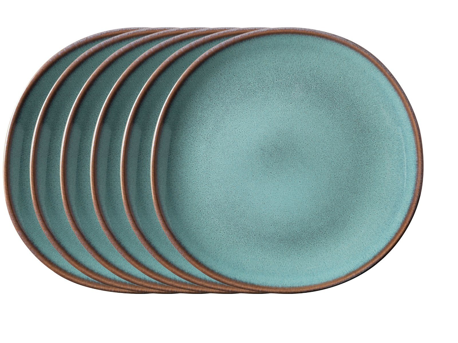 Durch die spezielle reaktive Glasur entstehen stets unterschiedliche Farbnuancen. So wird jedes Stück zu einem einzigartigen Kunstwerk, das Speisen ganz besonders in Szene setzt. Diese farbabweichungen, Blasen und Unebenheiten sind hier ausdrücklich gewünscht und unterstreichen den Charakter des Geschirrs.