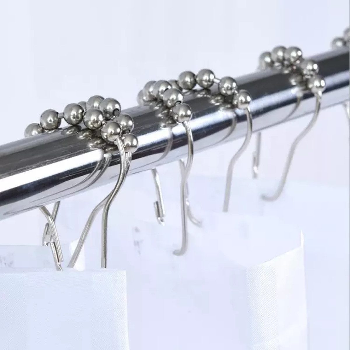 Komplettes Duschstangen-Set zum Aufhängen eines Duschvorhangs für verschiedene Anwendungen, inkl.der eleganten silbernen Ringe