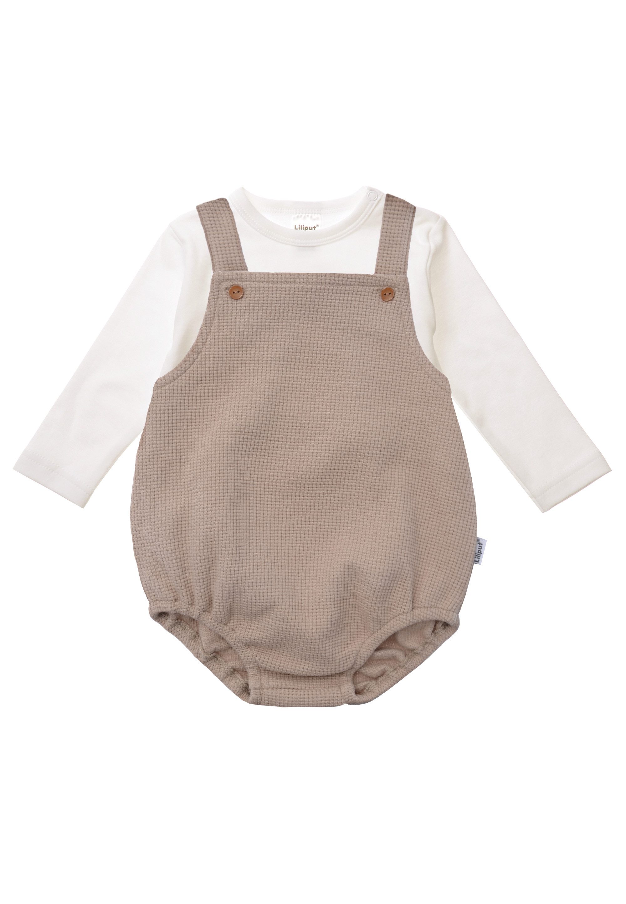 Entdecken Sie das zauberhafte Set von Liliput, bestehend aus einer entzückenden Baby Latzshorts in Beige ohne Beine aus Waffelpiqué und einem bequemen Langarmshirt in Ecru! Dieses Set vereint Stil und Komfort, um Ihrem Baby ein gemütliches und süßes Outfit zu bieten. Der Strampler in Beige ist nicht nur super niedlich, sondern auch äußerst praktisch. Hergestellt aus hochwertigem Waffelpiqué-Stoff bietet sie Ihrem Baby ein angenehmes und bequemes Tragegefühl. Die Latzshorts verfügt über verstellbare Träger, die jeweils mit zwei Knöpfen befestigt werden können. Dadurch können Sie die Träger individuell an die Размер Ihres Babys anpassen und so für einen optimalen Sitz sorgen. Das Langarmshirt in Ecru rundet das Set perfekt. Ob zum Spielen zuhause, für einen Spaziergang im Park oder für besondere Gelegenheiten, dieses Set aus Baby Latzshorts und Langarmshirt macht immer eine gute Figur. Die hochwertigen Materialien und das liebevoll gestaltete Design sorgen dafür, dass Ihr kleiner Schatz sowohl stylisch als auch bequem gekleidet ist. Material: Latzshorts: 60% Baumwolle und 40% Polyester; Langarmshirt: 100% Baumwolle.