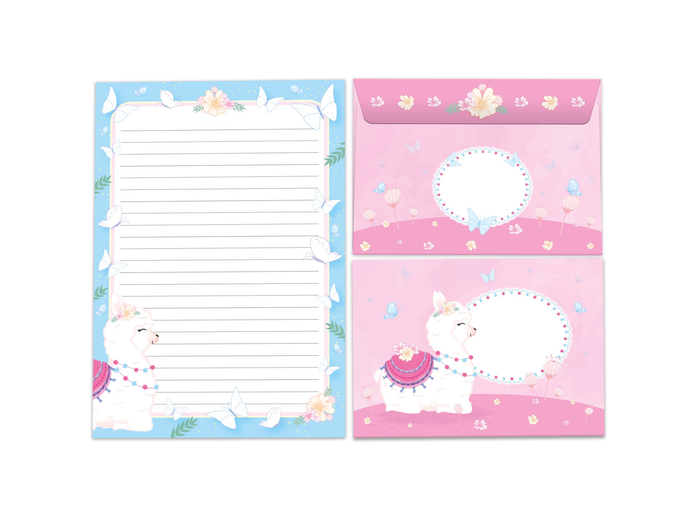 Briefpapier Set Kinder Briefblock A5 mit Umschlägen Notizblock Papier Lama Alpaka