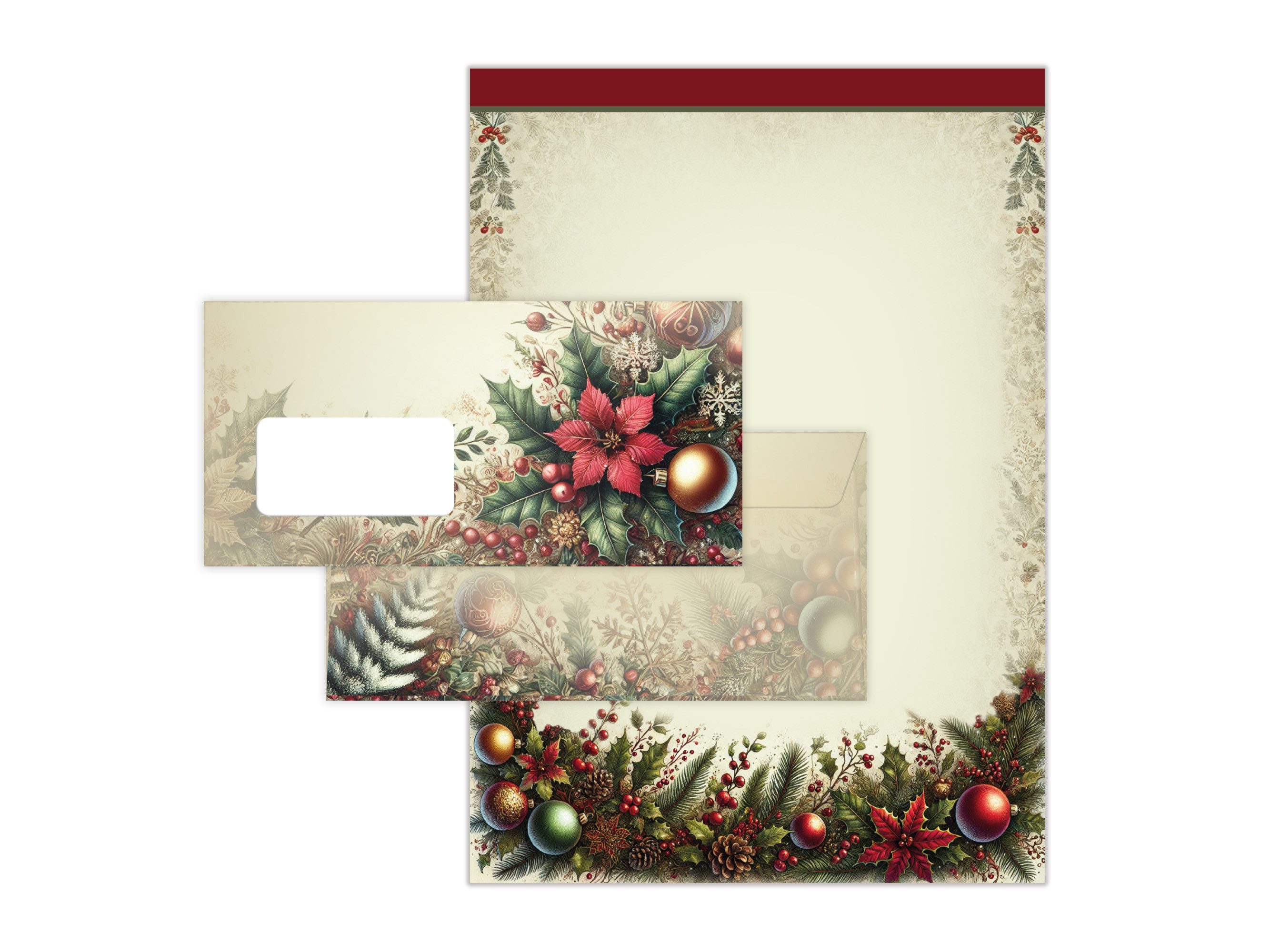 LIMONIA Briefpapier Weihnachten Briefpapier Set A4 Briefbögen mit Umschlägen Geschenk Idee, Briefbogen Set Weihnachtsbriefpost Weihnachtsbriefpapier Vintage