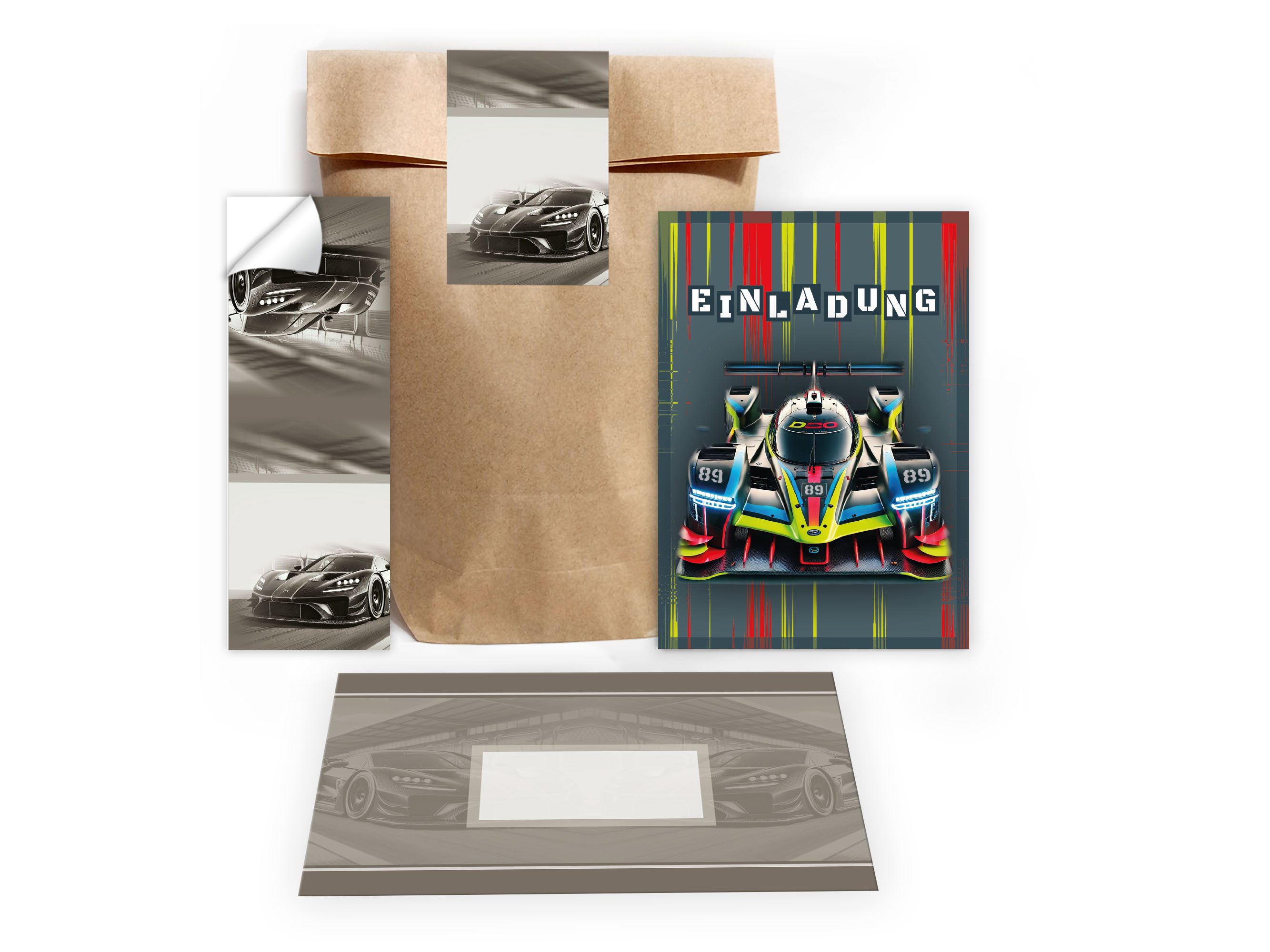 LIMONIA Einladungskarten Auto zum Geburtstag Einladungen Karten mit Umschlägen Mitgebsel car, Mitgebsel Set Rennauto für Kinder zum Geburtstag Rennbolide