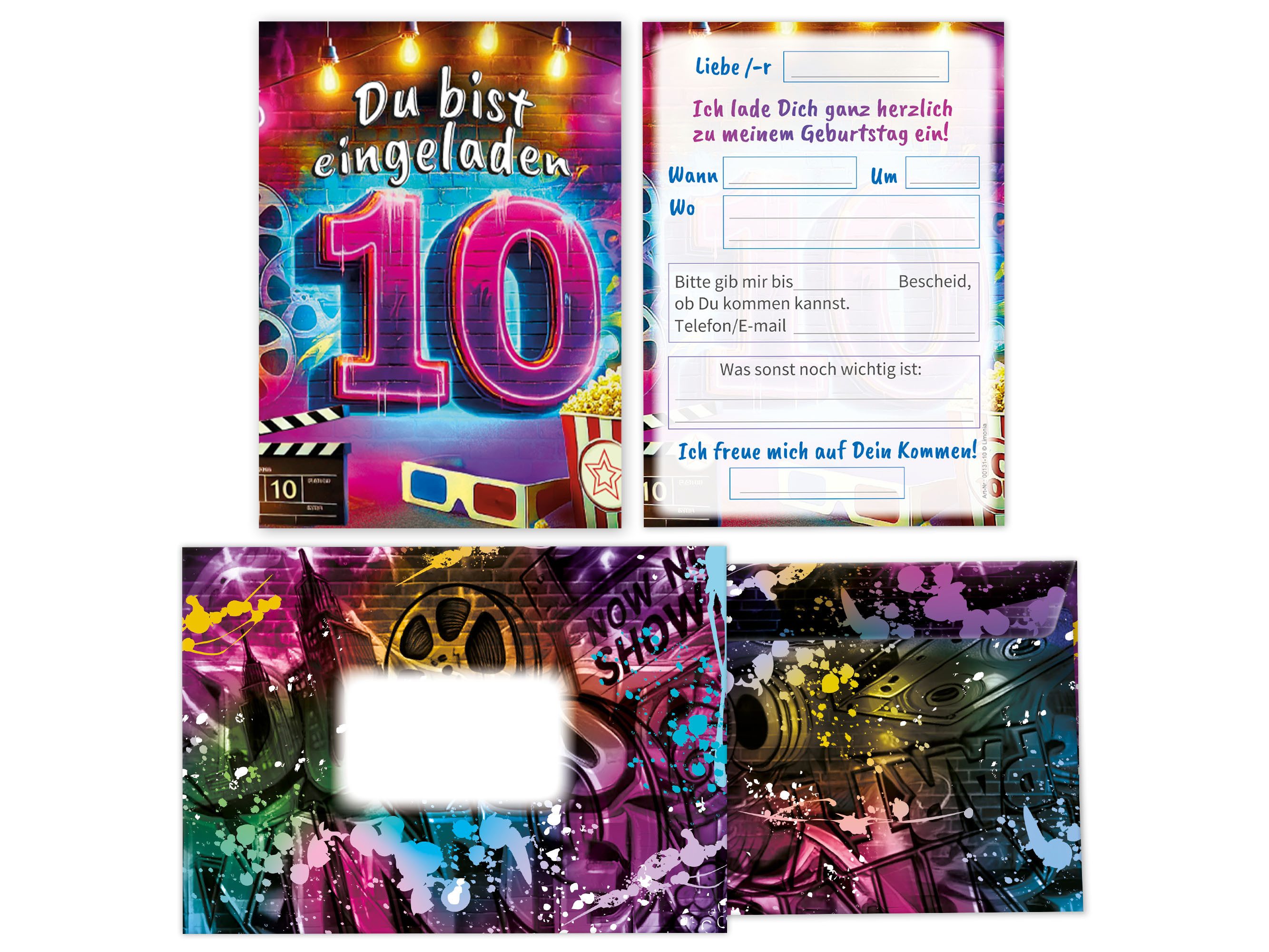 Inhalt: Das Set umfasst 12 coole Einladungskarten und die passenden 12 Umschläge – alles, was Sie für Ihre Einladung benötigen.