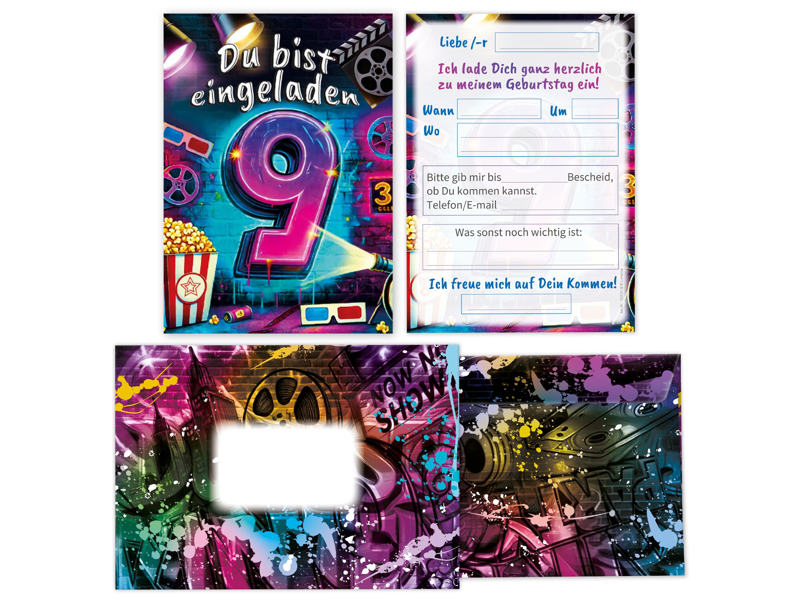 Inhalt: Das Set umfasst 12 coole Einladungskarten und die passenden 12 Umschläge – alles, was Sie für Ihre Einladung benötigen.