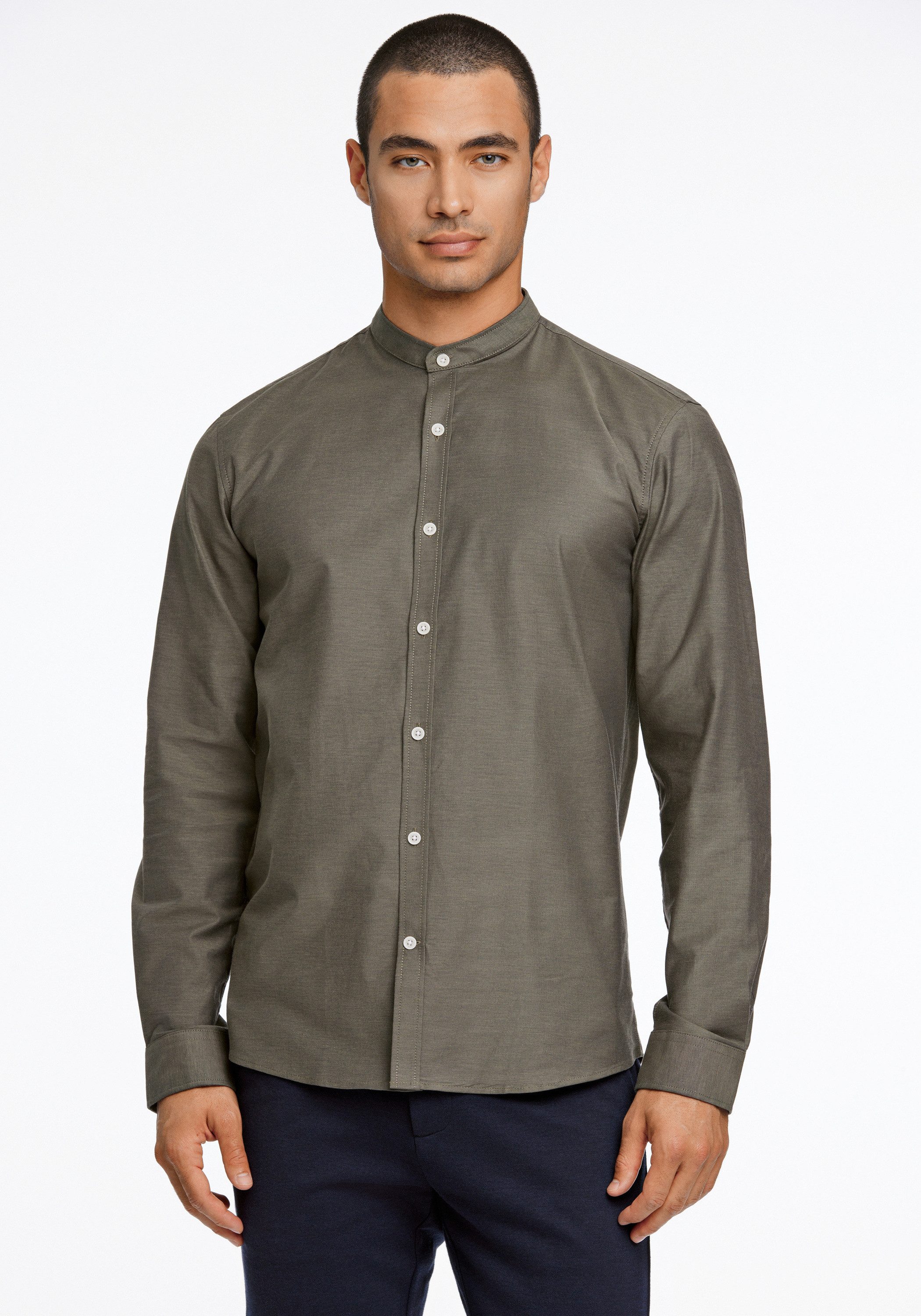 Das Langarmhemd von LINDBERGH ist bei festlichen Veranstaltungen oder im Büro eine stilsichere Wahl. Der Stehkragen wird nicht umgeschlagen, liegt am Hals an und ist eine Grundlage für Freizeit-Outfits. Die langen Ärmel enden in einer geknöpften Manschette. Dieses Hemd hat einen Rundhalsausschnitt mit Knopfleiste und ist normal sowie schmal geschnitten, sodass es deinen Oberkörper betont.
