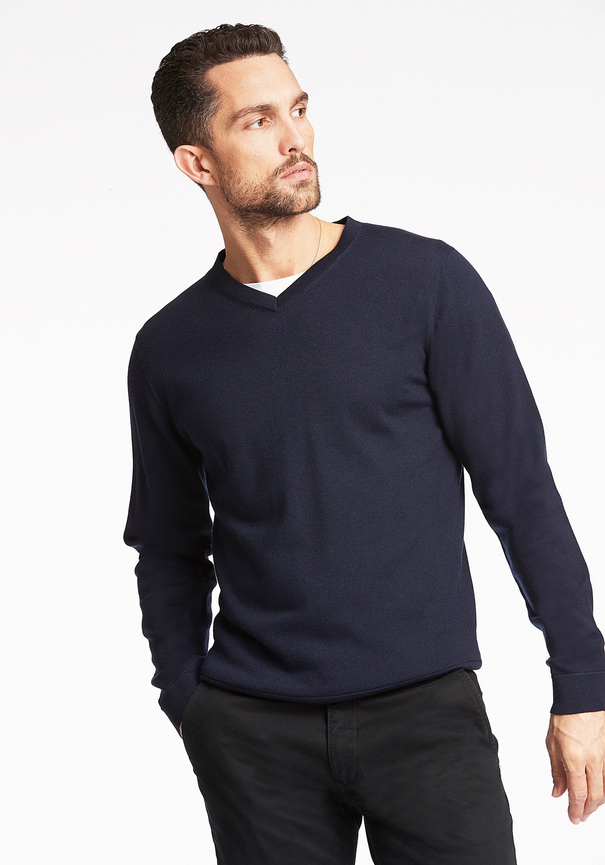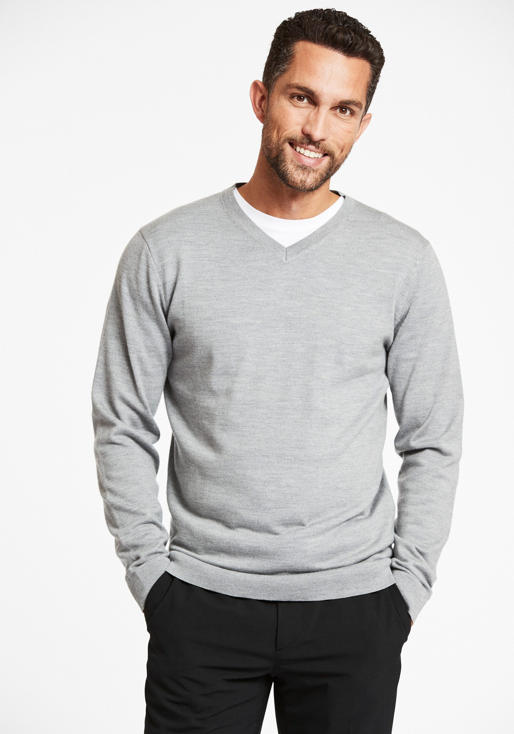 Exklusiver und klassischer Strickpullover von Lindbergh Black mit V-Ausschnitt. Der Pullover besteht aus 100 % Merinowolle, wodurch er besonders weich und warm ist, ohne zu kastenförmig zu sein. Die Wolle hat antibakterielle Eigenschaften und ist zudem temperaturregulierend. Das heißt, der Pullover hält dich an kalten Tagen warm und an warmen Tagen kühl. Am Saum des Pullovers sowie an den Ärmelbündchen und am Halsausschnitt befinden sich gerippte Abschlüsse. Relaxed Fit ist etwas enger als Regular Fit, bietet aber immer noch viel Bewegungsfreiheit. Der Pullover eignet sich sowohl für das Büro als auch für eine lockere Party und kann problemlos sowohl alleine als auch über einem Hemd getragen werden.