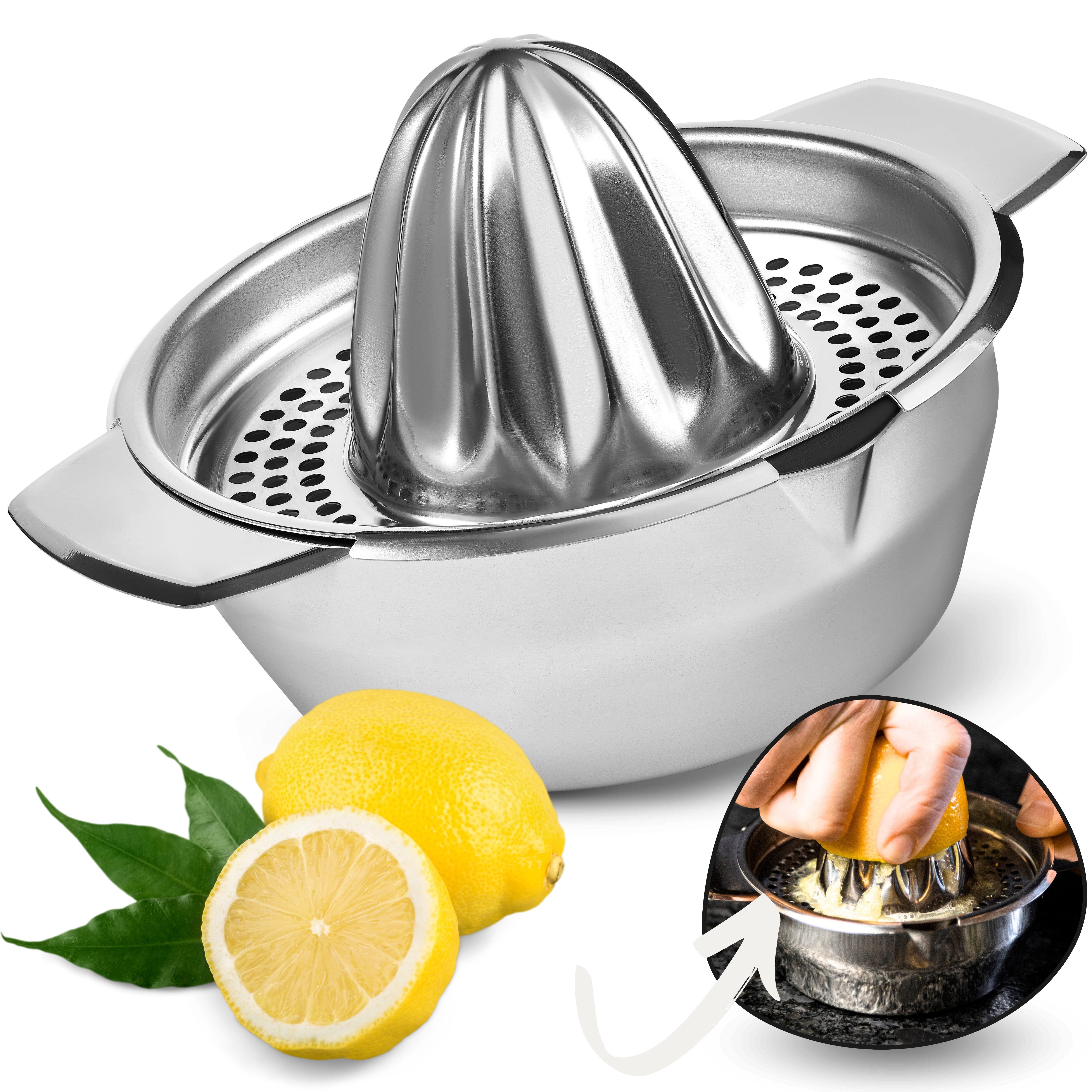 Die Zitronenpresse ist aus hochwertigem und rostfreiem Edelstahl gefertigt. Durch die Bauweise können Sie auch mit viel Kraft auf die Saftpresse einwirken und alles herausholen - das Material wird den Belastungen standhalten!