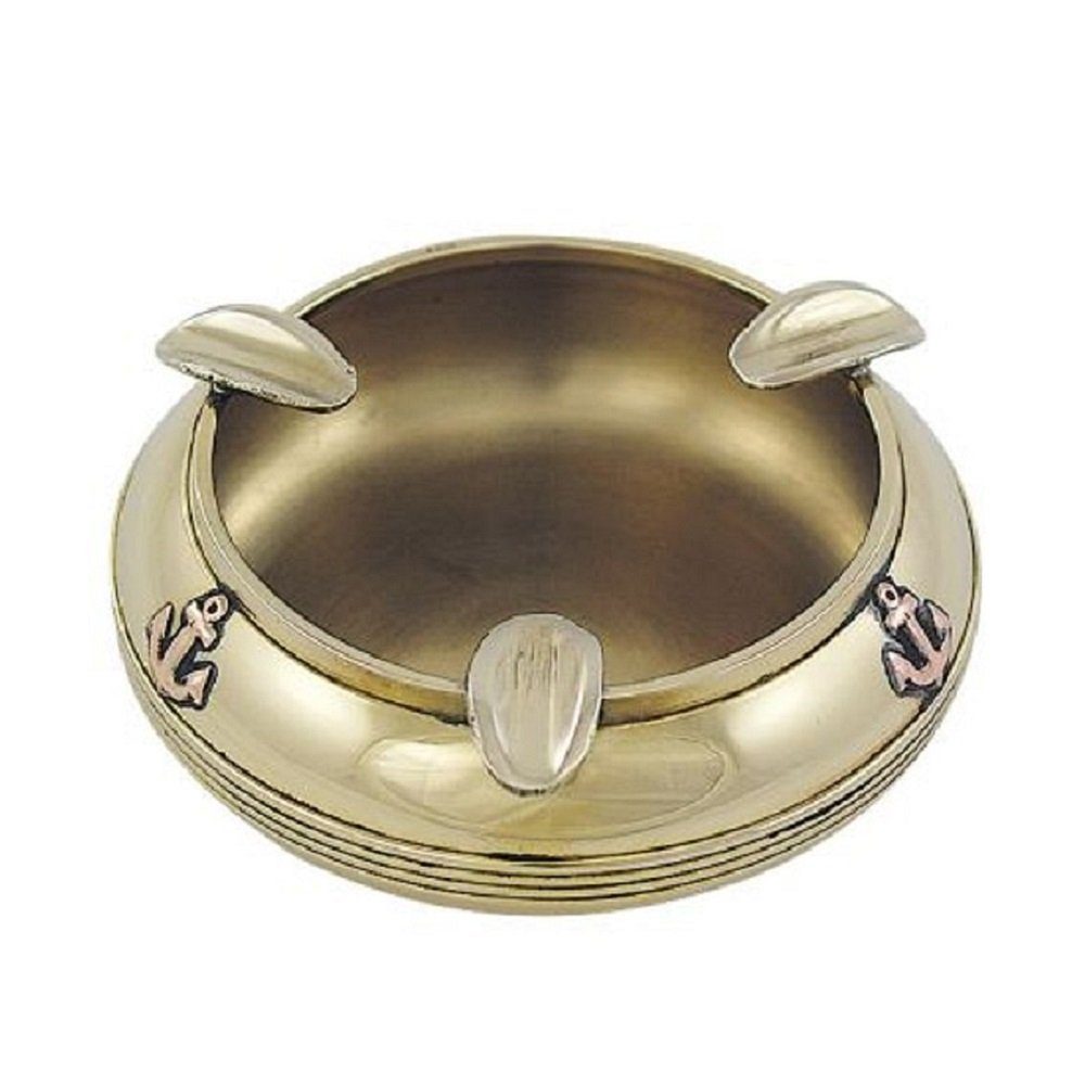 Aschenbecher offen, Tisch Aschenbecher mit 3 Ablagen, Messing Marine Ascher mit Anker Symbolen auf dem Rand. Der Aschenbecher ist aus poliertem Messing gefertigt. Dieser Artikel gehört zu unseren zahlreichen Angeboten aus dem Bereich maritime Tisch- Bar- & Wein-Accessoires.