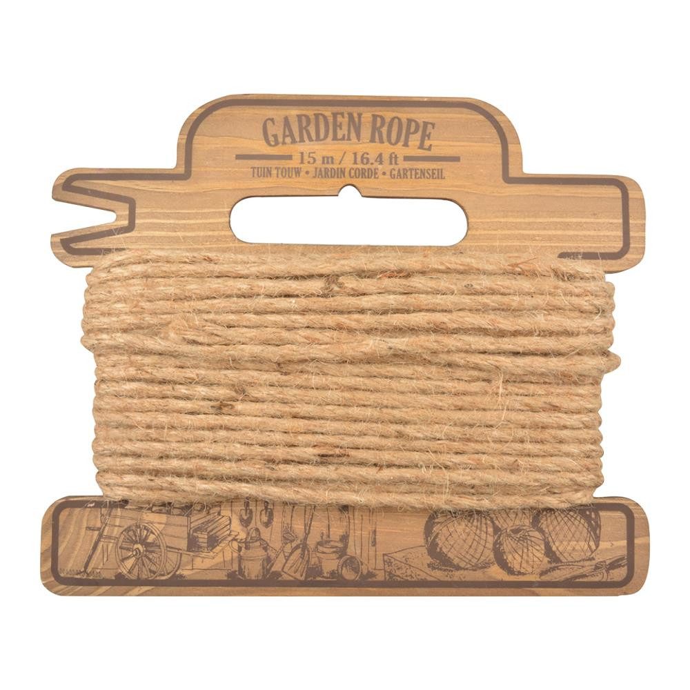Ein Jute Seil kann für viele Zwecke im Garten verwendet werden, wie zum Beispiel dem Festbinden von Sträuchern und Blumen. Auf dieser authentischen, hölzernen Haspel können die 15m Tau ordentlich aufgerollt und aufbewahrt werden.