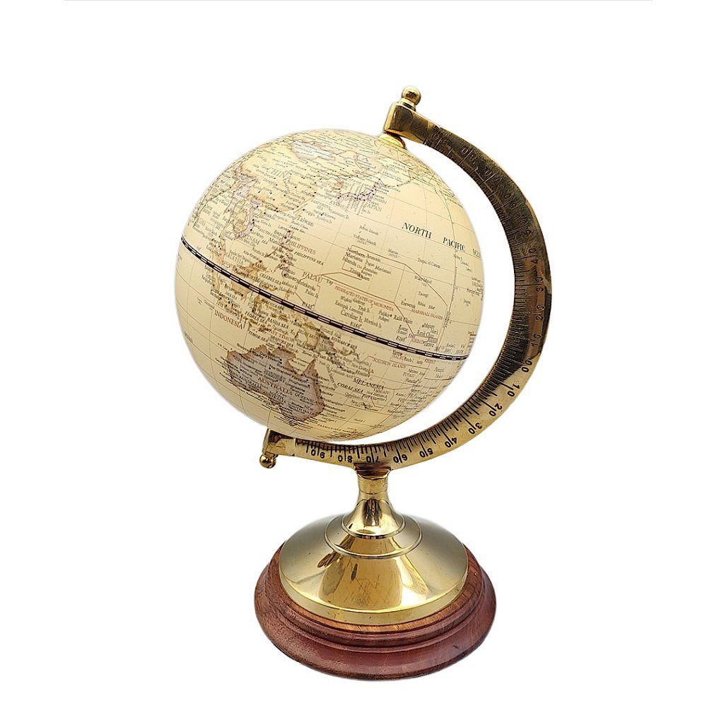 Globus mit historischem Kartenmaterial auf anlaufgeschütztem massivem Messingstand und einem Edelholz Standfuß 23 cm. Tischmodell eines klassischen Erdglobus mit englischer Beschriftung. Dieser Artikel gehört zu unseren zahlreichen Angeboten aus dem Bereich der maritimen Dekoration.