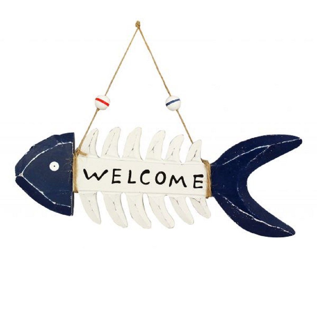 Grätenfisch "Welcome" maritime Wand Deko, Landhaus Schild, Meer, Strand, Urlaub, Ferien. Putziges Willkommen Schild, Begrüßungsschild für die Tür das Fenster oder sonst wo. Das Teil ist aus Holz und von Hand in Weiß und Blau bemalt, dabei muss wohl darauf hingewiesen werden, daß sich jedes Schild vom nächsten unterscheidet, echte Handarbeit eben.