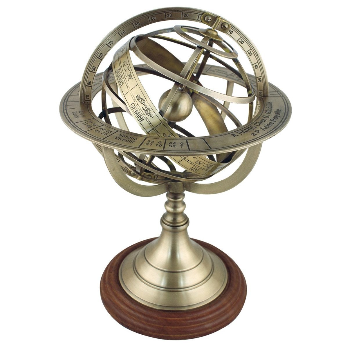 Bronze Armillarsphäre auch Weltmaschine mechanisch voll beweglich. Sehr präziese gearbeitetes Universum der Antiken Welt aus hochwertigem bronziertem Messing.