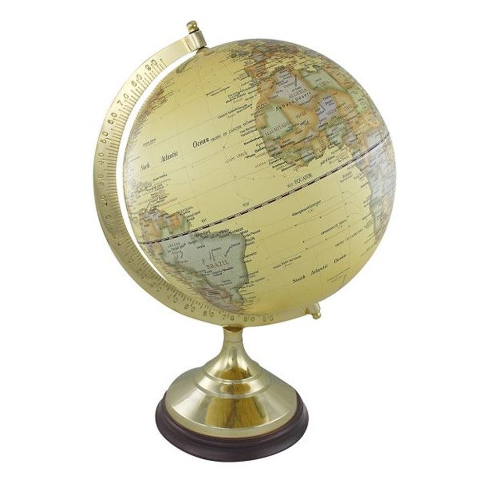 Reiche Kaufleute und Kapitänsfamilien hatten den Wunsch, die Routen der Seefahrer nachzuverfolgen. Die Niederlande wurde im 16. Jahrhundert zum Herstellungszentrum für immer bessere geografische Karten, Globen und Navigationsinstrumente. Hier erhalten Sie ein Modell eines solchen dekorativen und ausgesprochen schönen Globus, aus dem Zeitalter der großen Entdeckungen. Der vierfüßige Ständer ist aus massivem anlaufgeschütztem Messing gefertigt.