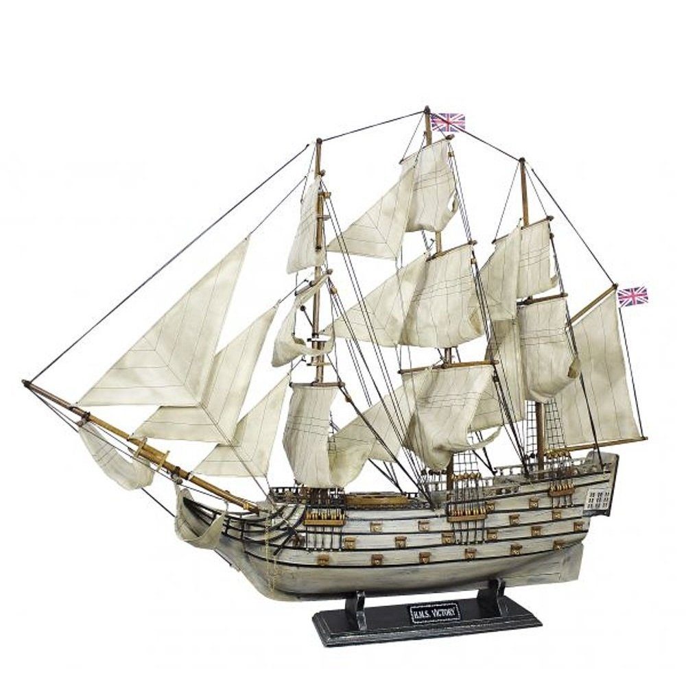 Linienschiff "H.M.S.Victory", Modell Segelschiff mit Fregatt- Takelung. Modellschiff aus gealterten Materialien. Das Modell ist zusätzlich gealtert worden, so ist der Rumpf aus gealtertem Holz gefertigt. Das Modell ist bereits vormontiert, es muss lediglich die Takelage aufgerichtet werden, eine Anleitung liegt dem Modell bei. All unsere Schiffsmodelle werden per Hand gefertigt und anschließend farblich gestaltet, daher gleicht kein Schiff dem anderen aus der gleichen Serie. Die Abbildungen stellen somit immer nur eine Moment Aufnahme dar. Das gelieferte Schiff kann somit von den hier gezeigten Artikelfotos minimal abweichen.